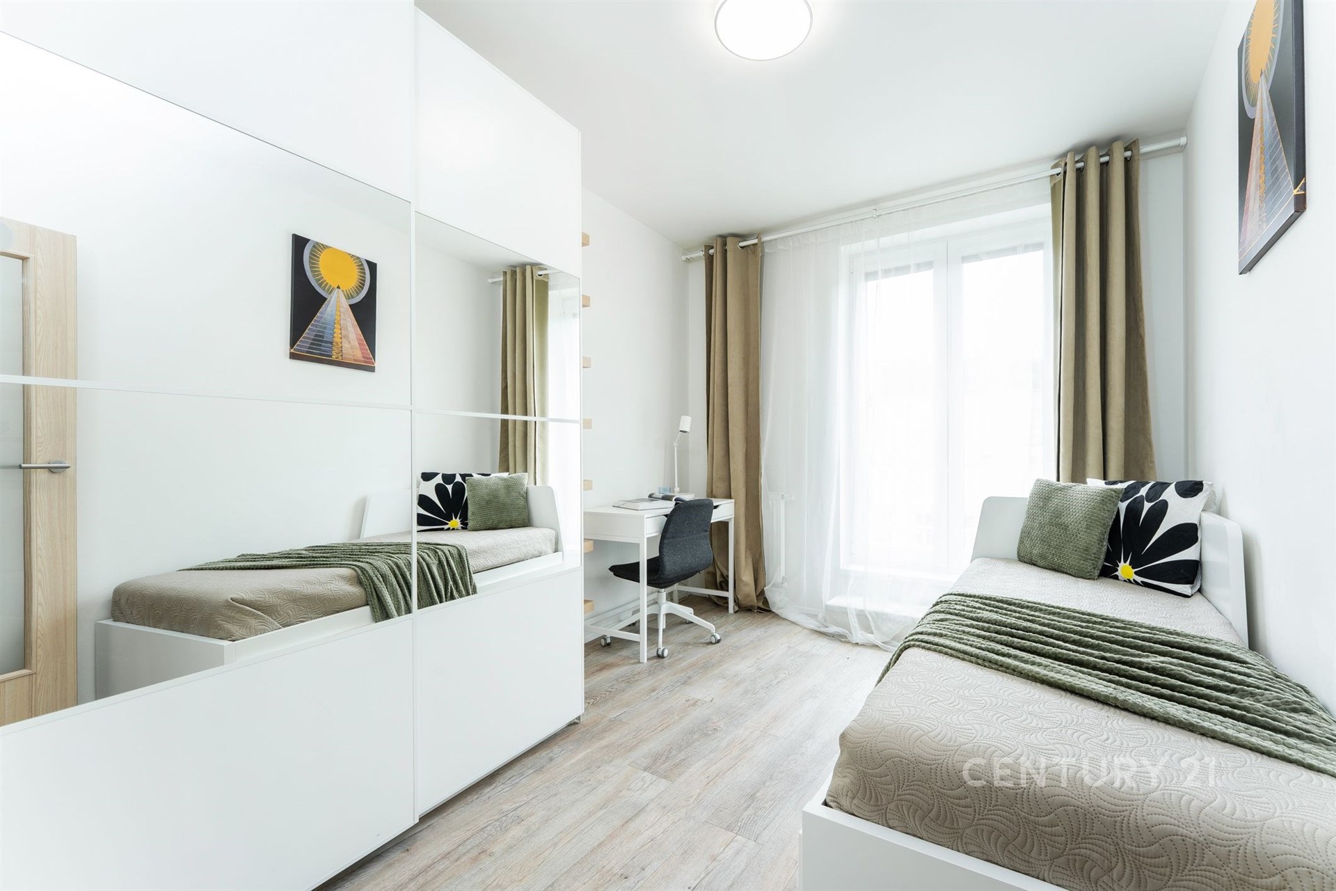 V bytě najdete špičkovou kuchyni, která je plně vybavená moderními spotřebiči a nabízí dostatek prostoru pro vaření a stolování. Obývací pokoj je prostorný, s přímým přístupem na terasu, která je ideální pro relaxaci a vnější stravování v teplejších měsících. Celkově byt obsahuje tři ložnice, které poskytují komfortní a soukromý prostor pro odpočinek.