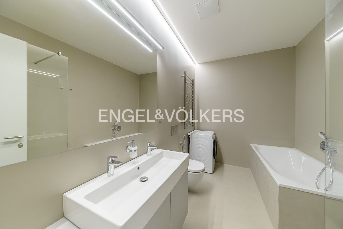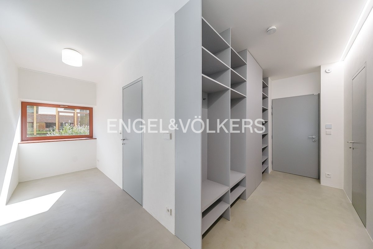V bytě byly použity nejmodernější technologie pro zajištění maximálního komfortu pro nájemce - podlahové topení, stropní chlazení, automatické předokenní rolety a inteligentní systém ovládání domácnosti Loxone. Tříložnicový byt se nachází ve sníženém přízemí. Srdcem apartmánu je prostorný obývací pokoj s kompletně zařízeným kuchyňským koutem se spotřebiči Siemens a se vstupem na soukromou terasu a předzahrádku.