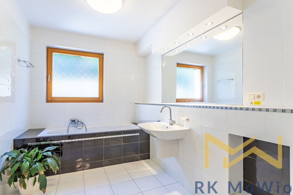 Půdorys bytové jednotky disponuje vstupní halou, prostorným obývacím pokojem se vstupem na balkón a jídelní částí, samostatnou kuchyní a špaizem, 4 ložnicemi, 2 koupelnami (1x s vanou a umyvadlem, 1x se sprchou, umyvadlem a toaletou) a extra toaletou. Vybavení bytu: kuchyňská linka (včetně lednice s mrazákem, sklokeramické varné desky, digestoře, myčky, elektrické a mikrovlnné trouby, pračky se sušičkou), vestavěné skříně, bezpečnostní dveře, velkoformátová okna, dřevěné podlahy a dlažba. Součástí nájmu je sklep a jedno parkovací stání, druhé parkovací stání za příplatek.
