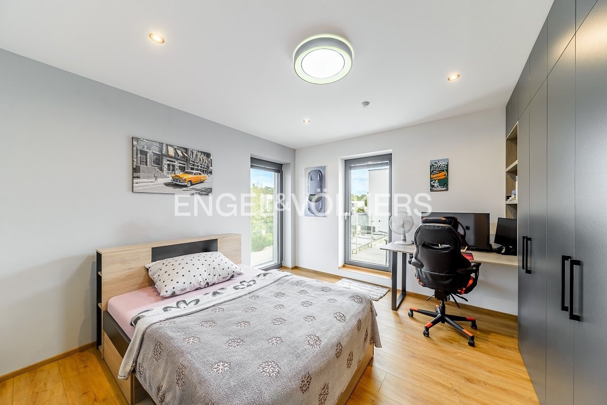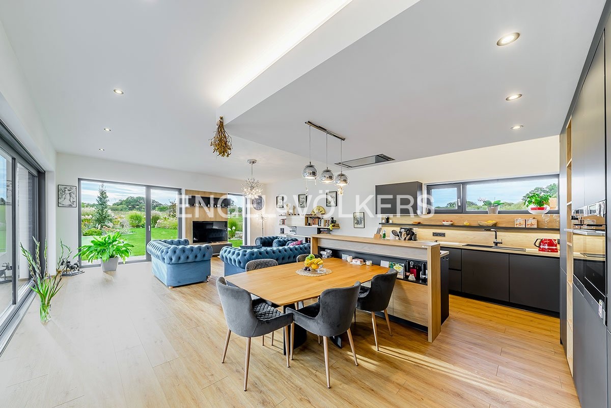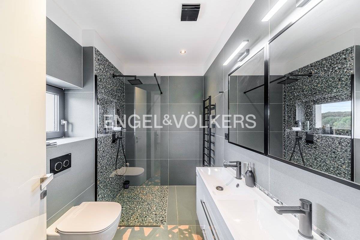 Kromě výborně navržené dispozice a kvalitních materiálů, jako jsou vinylové podlahy, dlažba, hliníková okna s trojskly a venkovní rolety, se vila pyšní i moderními technologiemi. Topení zajišťuje plynový kondenzační kotel s podlahovým vytápěním, což výrazně přispívá k úspornému provozu a pohodlí v celém domě. Všechen vestavěný nábytek byl vyroben na míru, což zajišťuje jeho vysokou kvalitu a funkčnost.