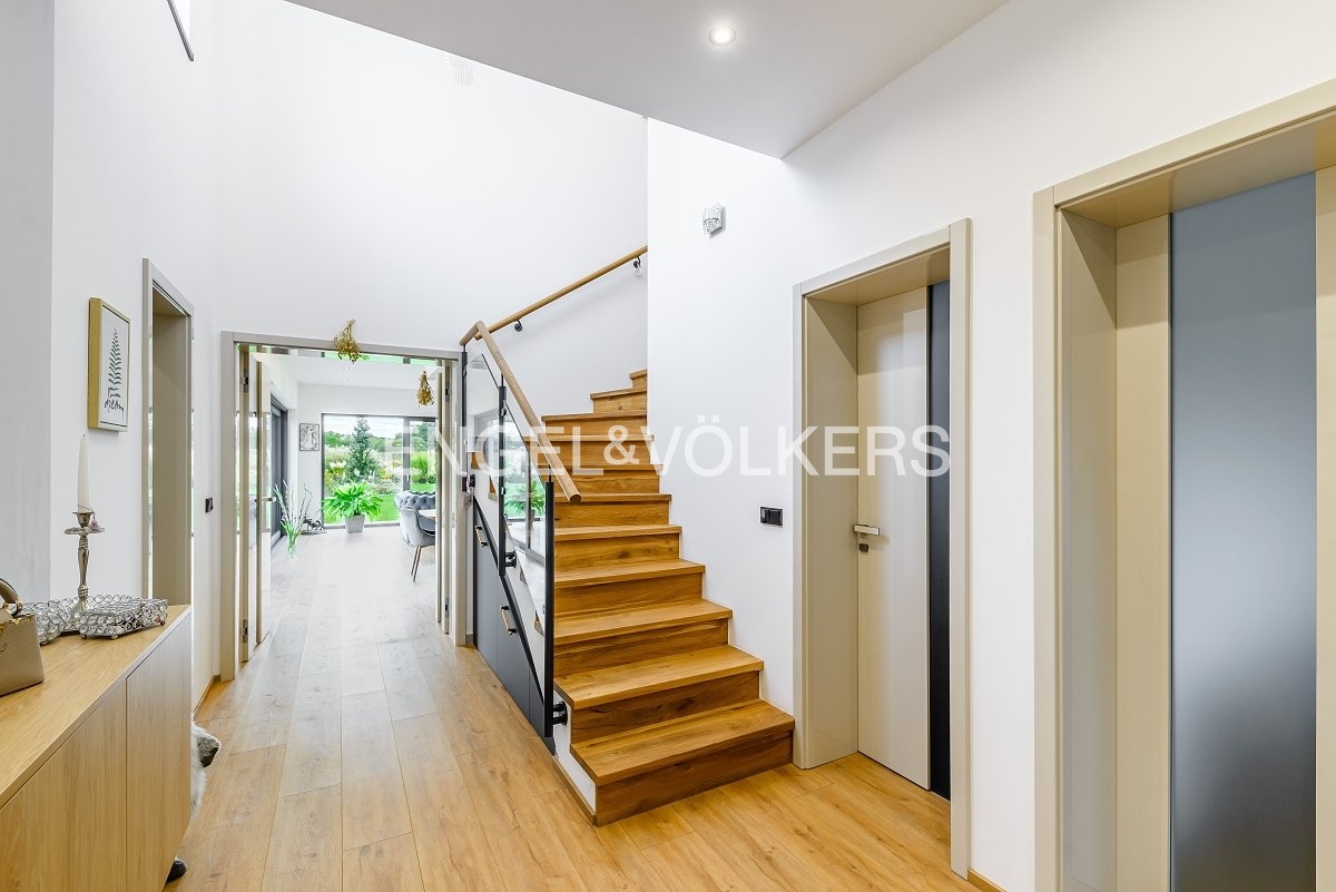 Vila je promyšleně rozdělena do dvou podlaží. Přízemí je navrženo pro pohodlný každodenní život a zahrnuje prostorný a světlý obývací pokoj, propojený s moderně vybavenou kuchyní, odkud je přímý vstup na zahradu. Dále zde najdete pokoj pro hosty s vlastní koupelnou, praktickou šatnu, technickou místnost, garáž pro jedno auto a skladovou místnost vhodnou například pro sportovní vybavení, jako jsou kola nebo lyže.