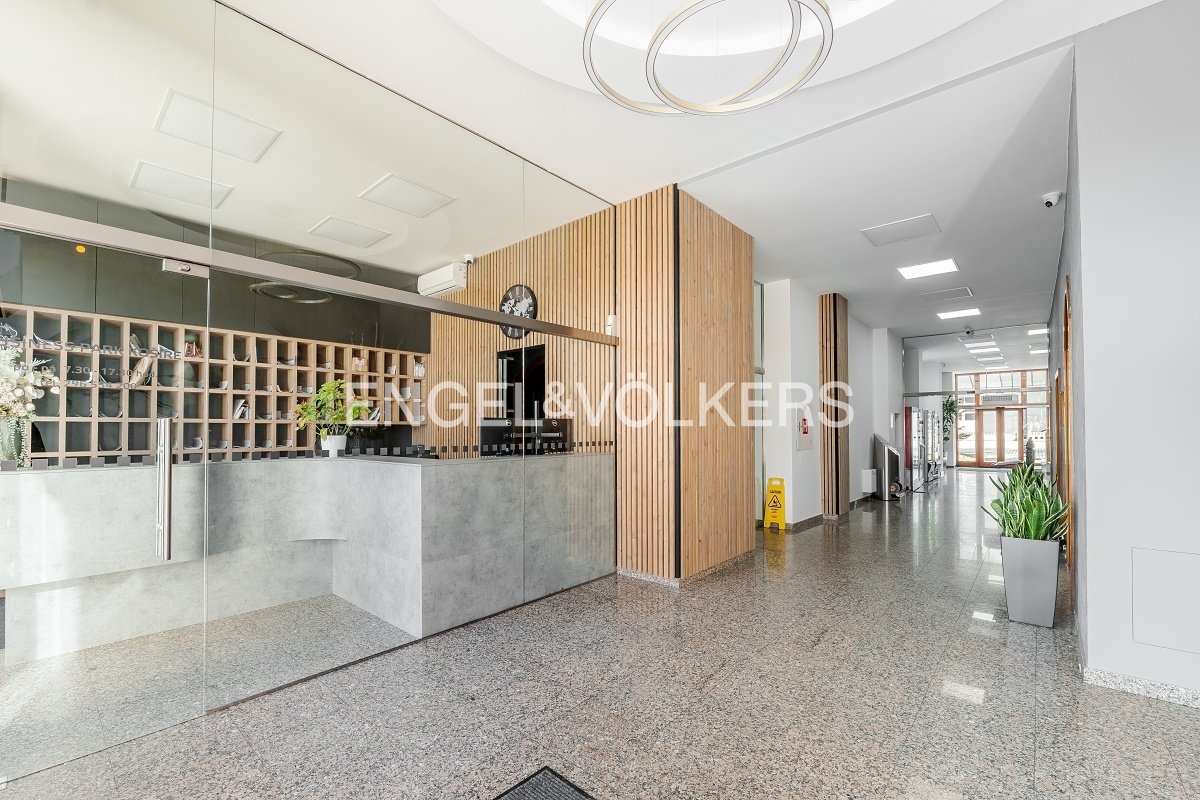 Zázemí budovy: Recepce, bezbariérový přístup, moderní výtahy, sdílená kuchyňka a zasedací místnosti.