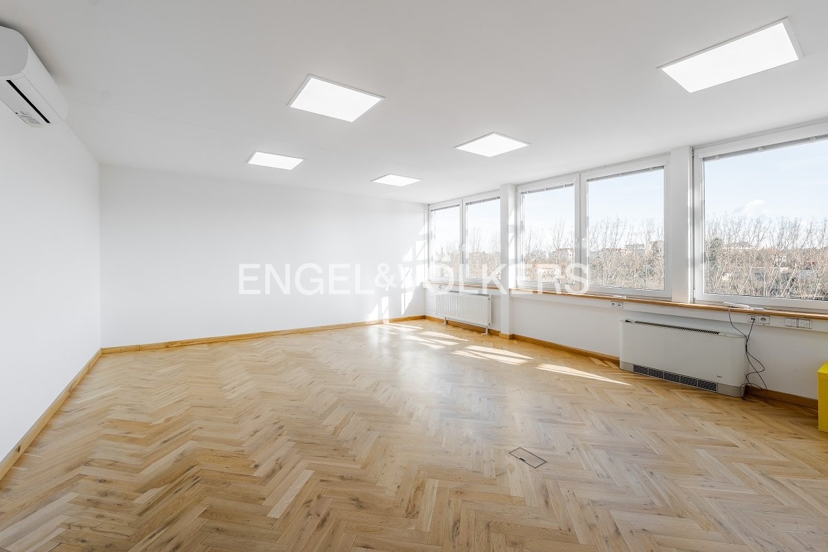 Nabízíme k pronájmu reprezentativní kancelářské prostory o rozloze 256,7 m² v 5. patře Business Parku Košíře na Praze 5. Tento světlý prostor s dřevěnými parketami kombinuje prostorný open space se čtyřmi prosklenými kancelářemi, které zajišťují soukromí i dostatek světla. Kancelář disponuje vlastní terasou s výhledem do okolí.