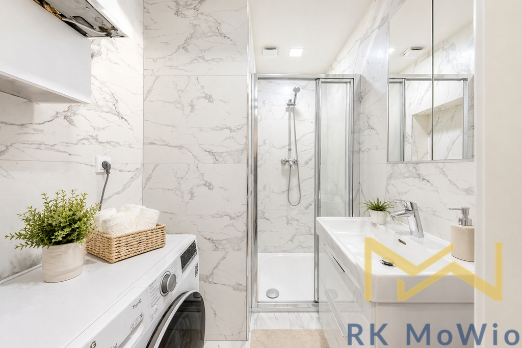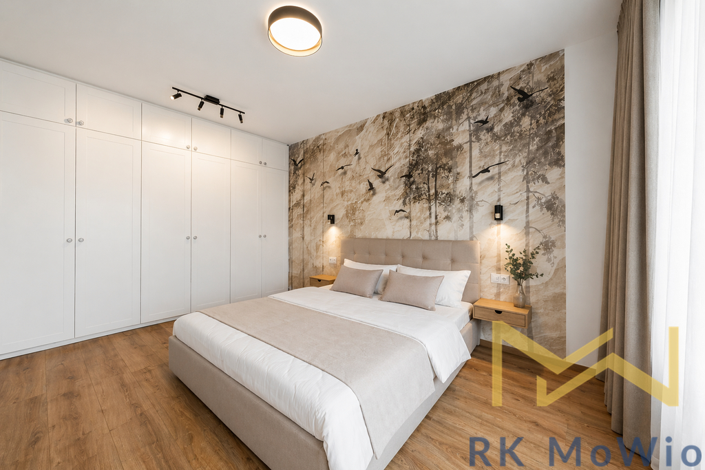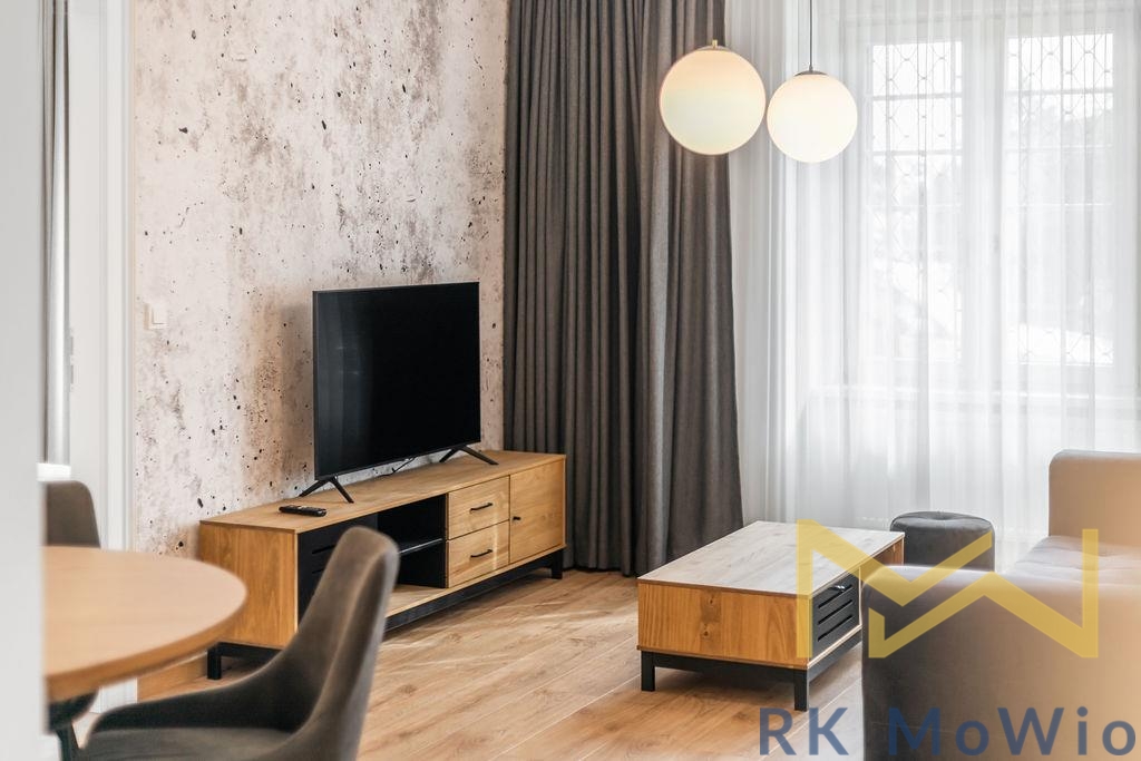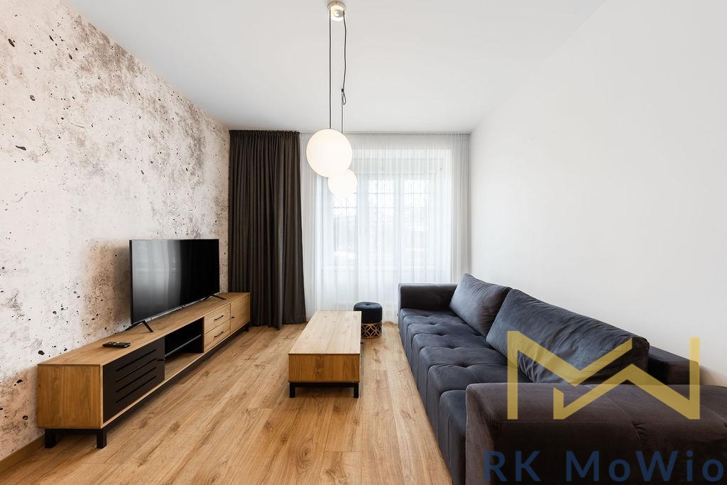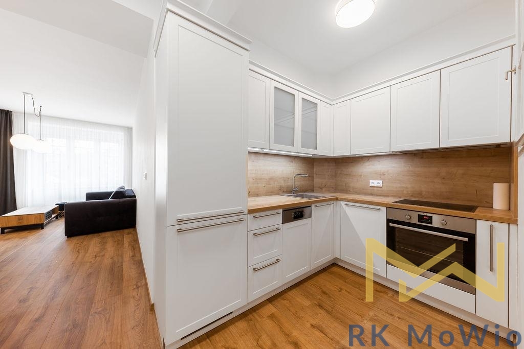 Dispozici bytové jednotky tvoří vstupní chodba, vzdušný obývací pokoj s kuchyňským koutem, jedna ložnice s vestavěnými skříněmi, koupelna (sprchový kout, umyvadlo) a samostatná toaleta. Interiér je elegantně zařízený a poskytuje komfortní bydlení bez nutnosti dalších investic. Vybavení bytu zahrnuje kuchyňskou linku se spotřebiči (lednice s mrazákem, sklokeramická varná deska, elektrická trouba, myčka, digestoř), vestavěné skříně, pračku, záclony a zatemňující závěsy, přípravu pro vysokorychlostní internet, dřevěné podlahy a dlažbu. K bytu náleží sklepní kóje.