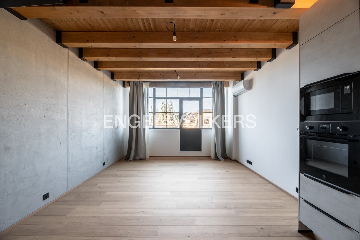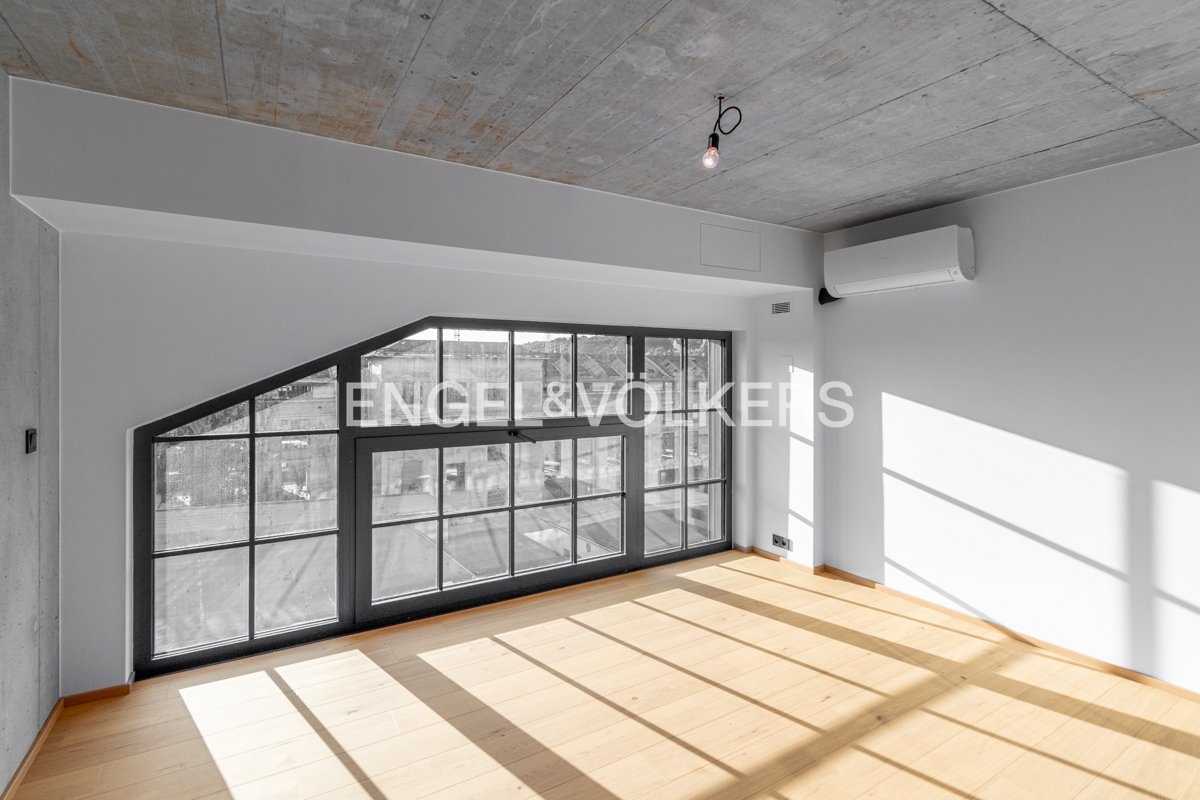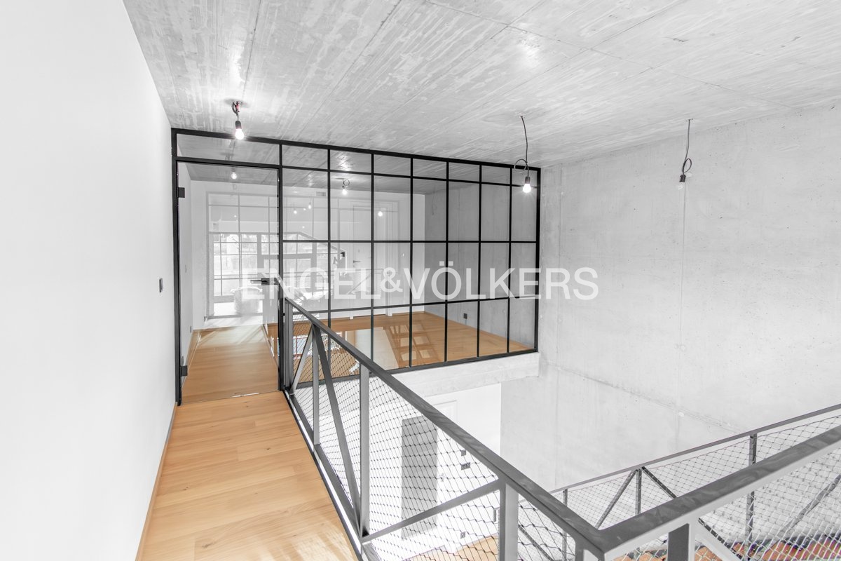 Dřevěné podlahy, velkoformátová okna, přiznané betonové stropy – industriální charakter s moderní estetikou
