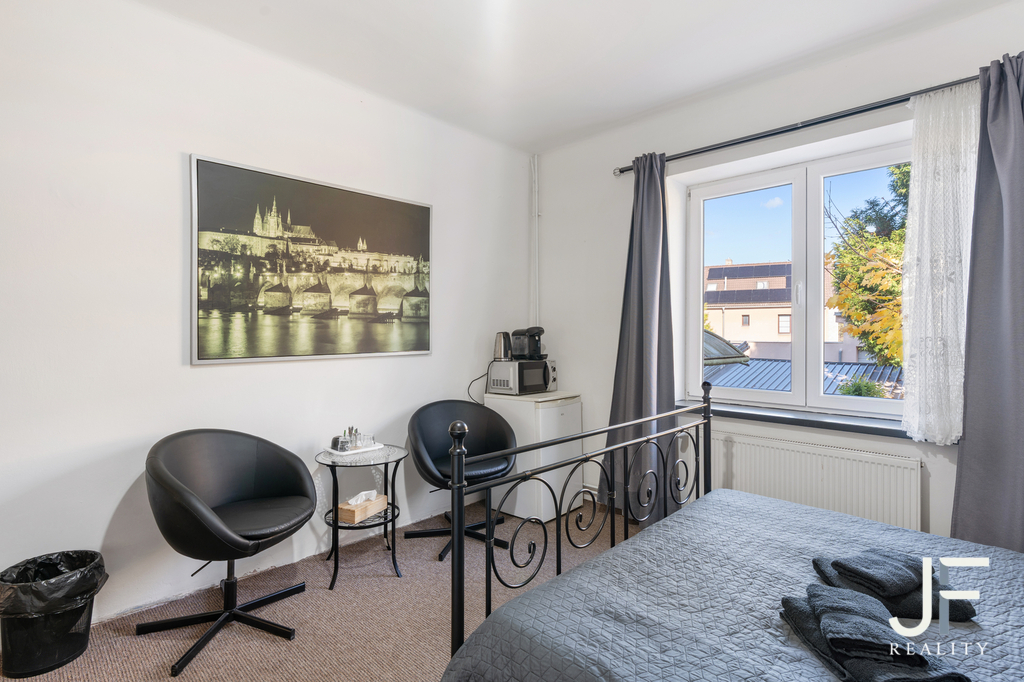 Na třech podlažích byly tři bytové jednotky dispozice 2+1, nyní je zde celkem osm pokojů krátkodobě i dlouhodobě pronajatých vytvořených jednoduchými stavebními úpravami.