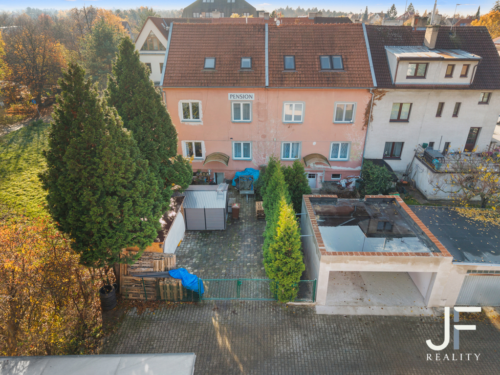 Jedná se vlastně o polovinu dvojdomu a polořadovou stavbu na konci slepé ulice.