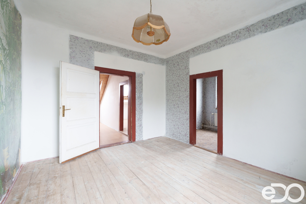 Cihlový dům, postavený přibližně před 80 lety, je určen ke kompletní rekonstrukci, což otevírá velký prostor pro realizaci vlastních představ. Ať už zvolíte moderní otevřenou dispozici, rozšíření obytné části směrem do zahrady nebo zvětšení podkroví, potenciál této nemovitosti je skutečně výrazný. Dům nabízí obytné přízemí, koupelnu, vstup do menšího sklepa a podkrovní patro se třemi pokoji.
