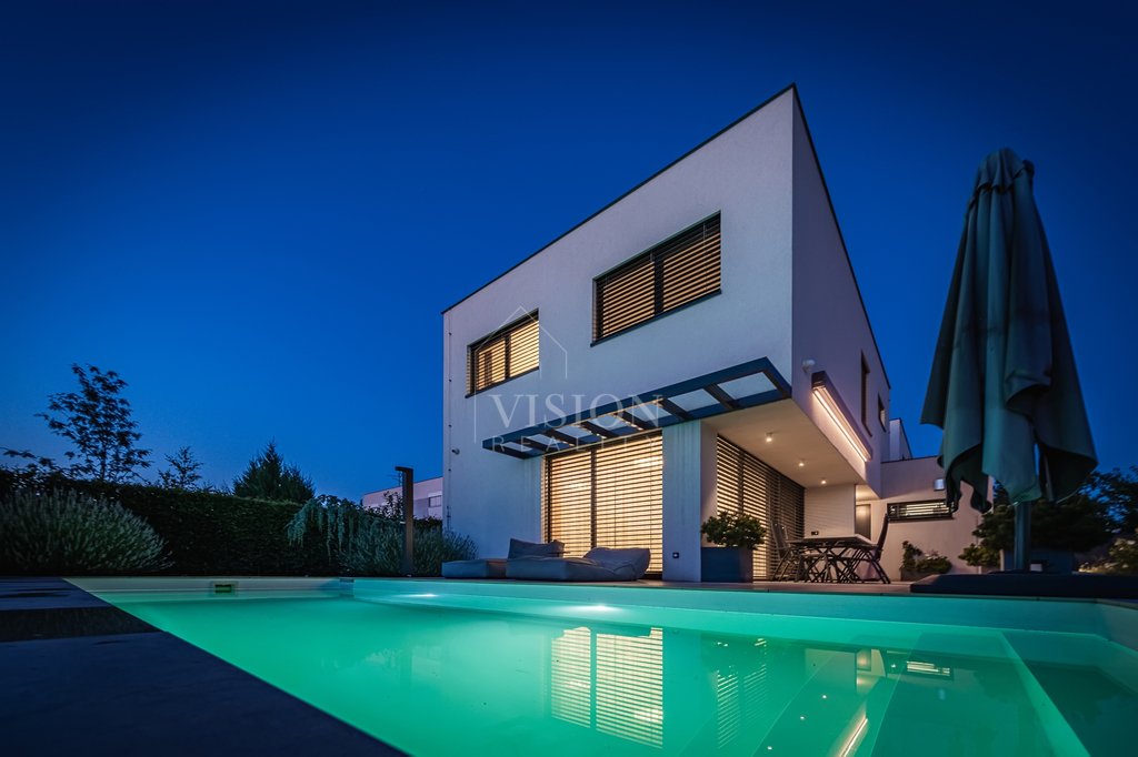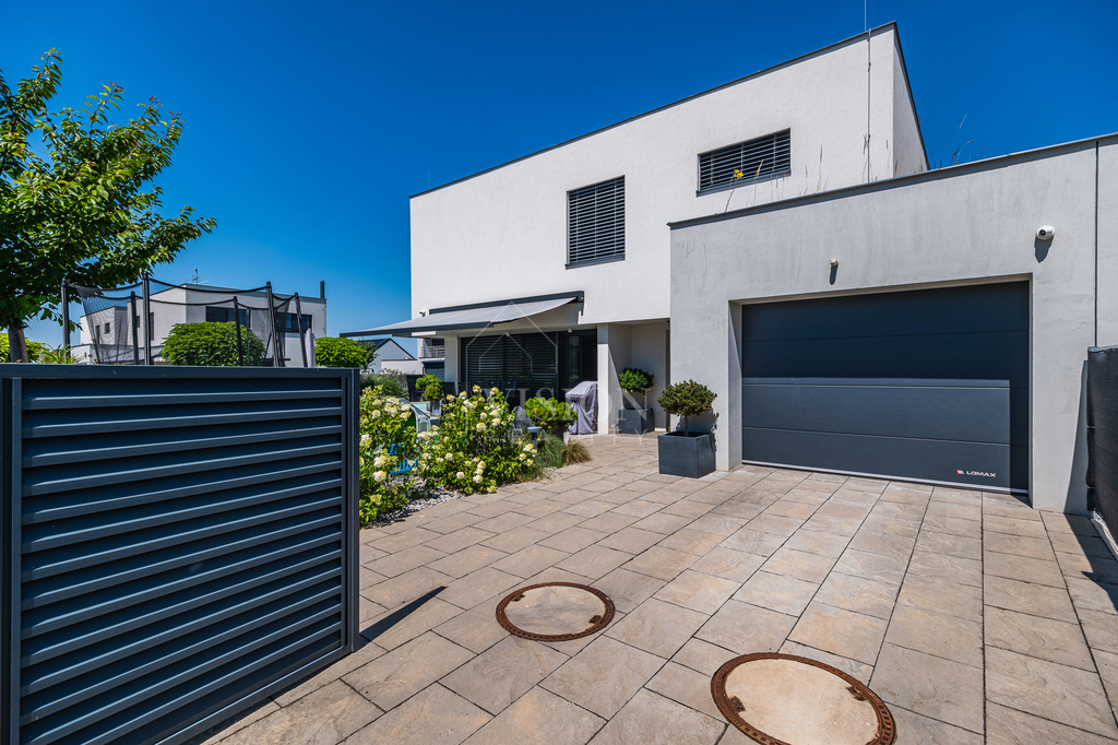 Nemovitost o dispozici 4+kk o podlahové ploše 145m², plochou parcely 464 m², garáží a bazénem nabízí nejen prostorný interiér, ale také příjemnou atmosféru domova.