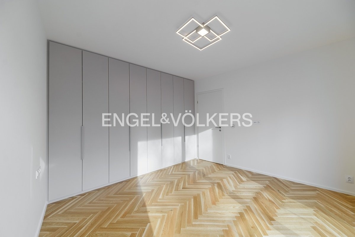 Od 1. 5. 2026 je připraven k nastěhování prostorný byt 3+kk v nejvyšším podlaží nově dokončené budovy v klidné rezidenční části Smíchova. Vysoké provedení bytu podtrhují masivní dřevěné podlahy, automatické předokenní rolety, hliníková okna, bezpečnostní zařízení a podlahové topení.
