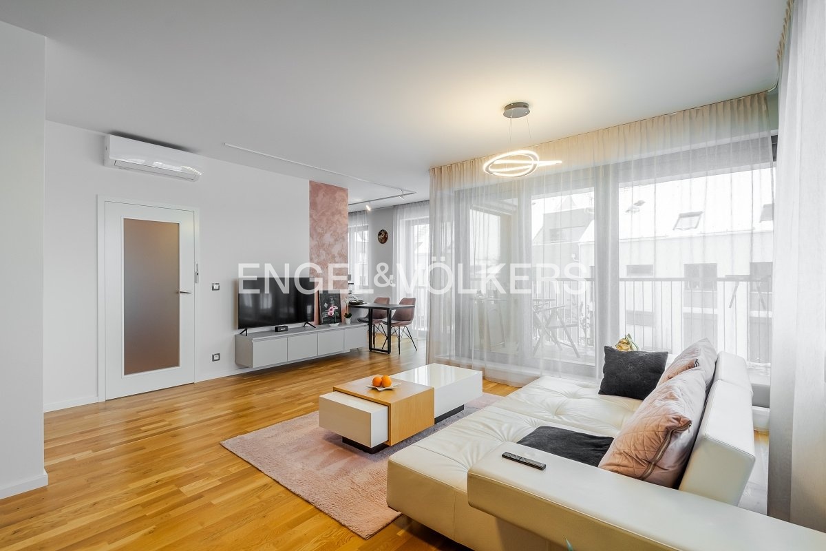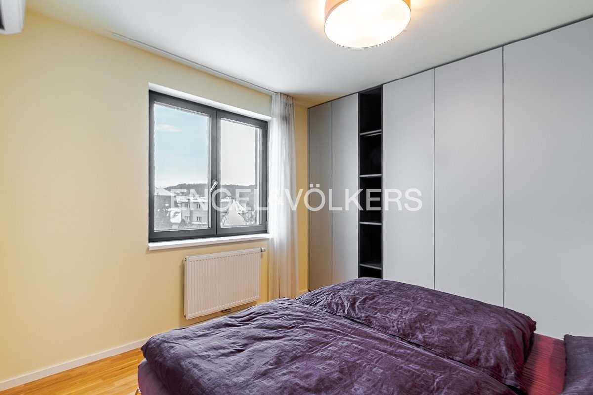 K dlouhodobému pronájmu je připraven moderní, plně vybavený byt o dispozici 2+kk a užitné ploše 63,1 m² ve 3. nadzemním podlaží novostavby v klidné rezidenční části Prahy 5 – Radlice (Malvazinky).