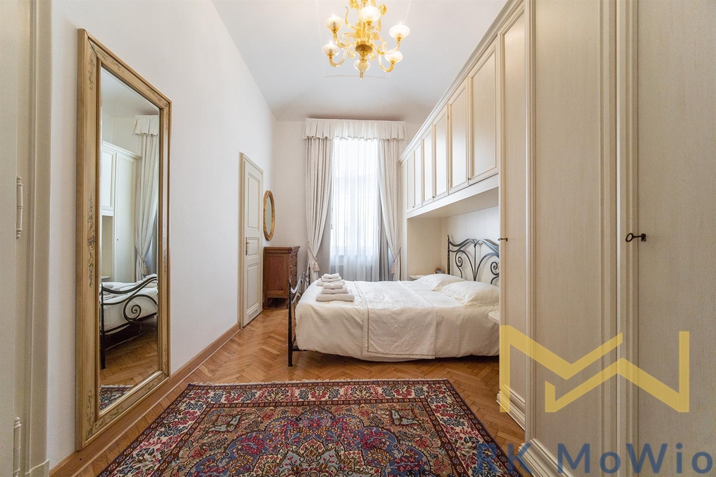 K pronájmu nabízíme plně zařízený, luxusní byt č. 8 o dispozici 2+kk s podlahovou plochou 78,6 m2, situovaný ve 4. patře (5. nadzemní podlaží) secesní budovy s výtahem, v ulici Truhlářská ve vyhledávané lokalitě Prahy 1 - Nové Město.