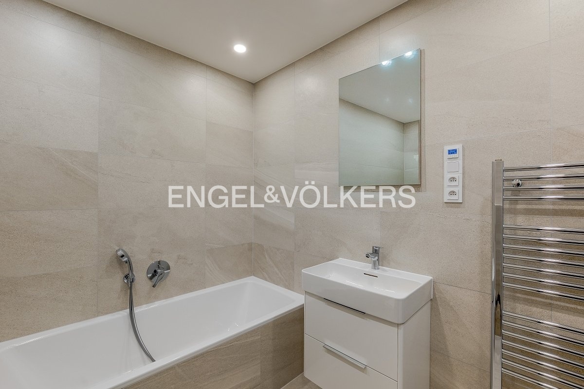 Koupelna je vybavena vanou a toaletou s bidetovou sprškou, přičemž byly použity kvalitní materiály značek Laufen a Grohe. Součástí je také přípojka na pračku.