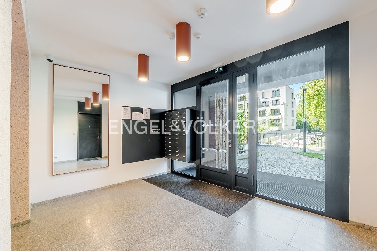 Součástí pronájmu je garážové stání v 2. podzemním podlaží s přípravou elektrického nabíjení a prostorný sklep, který bezprostředně navazuje na parkovací stání. Sklep je vybaven elektrickou zásuvkou.