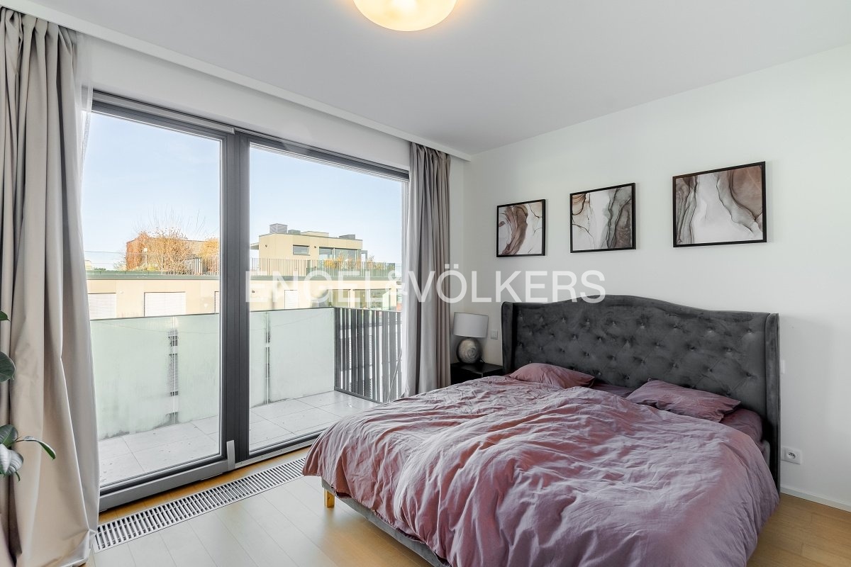Nabízíme k dlouhodobému pronájmu nový a prostorný byt o dispozici 2+kk v klidné rezidenční lokalitě - Košíře. Byt se nachází v novém developerském projektu Top residence a svou lokalitou poskytuje výbornou dopravní dostupnost do centra nebo do parku Cibulka, který se nachází hned u domu. Byt disponuje plně vybavenou kuchyní se všemi spotřebiči, úložnými prostory, sklepní jednotkou, automatickými venkovními žaluziemi, klimatizací a rekuperací.