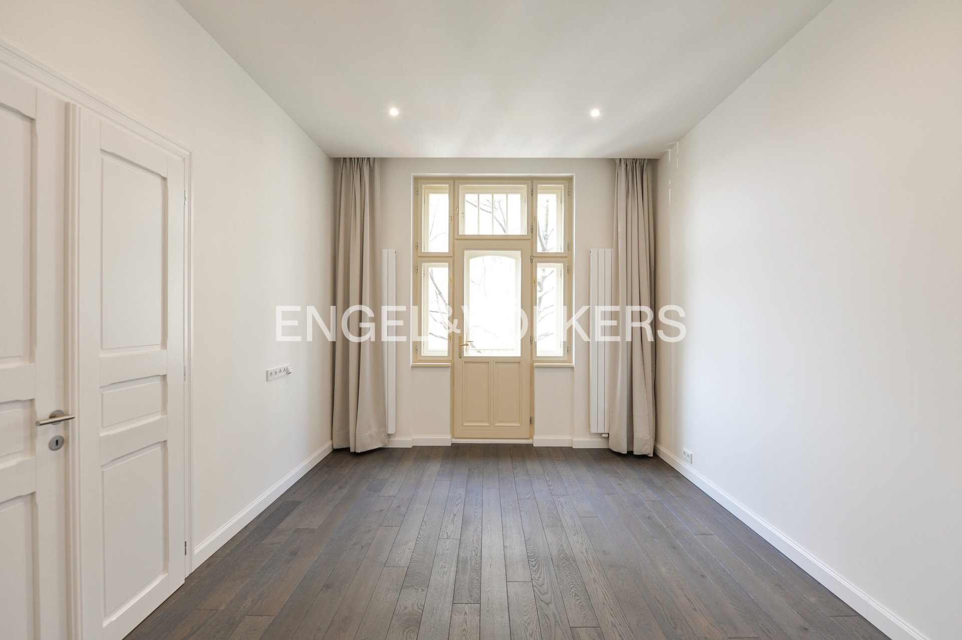 Historický secesní dům po kompletní rekonstrukci v roce 2018 v nejžádanější lokalitě v Praze, přímo na náměstí Jiřího z Poděbrad. Reprezentativní společné prostory domu.