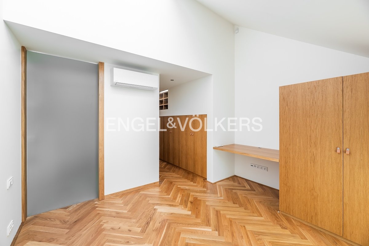 K okamžitému pronájmu je připravený nový velkorysý nezařízený a plně klimatizovaný podkrovní byt 2+kk, který se nachází v šestém nadzemním podlaží zrekonstruovaného činžovního domu s výtahem.