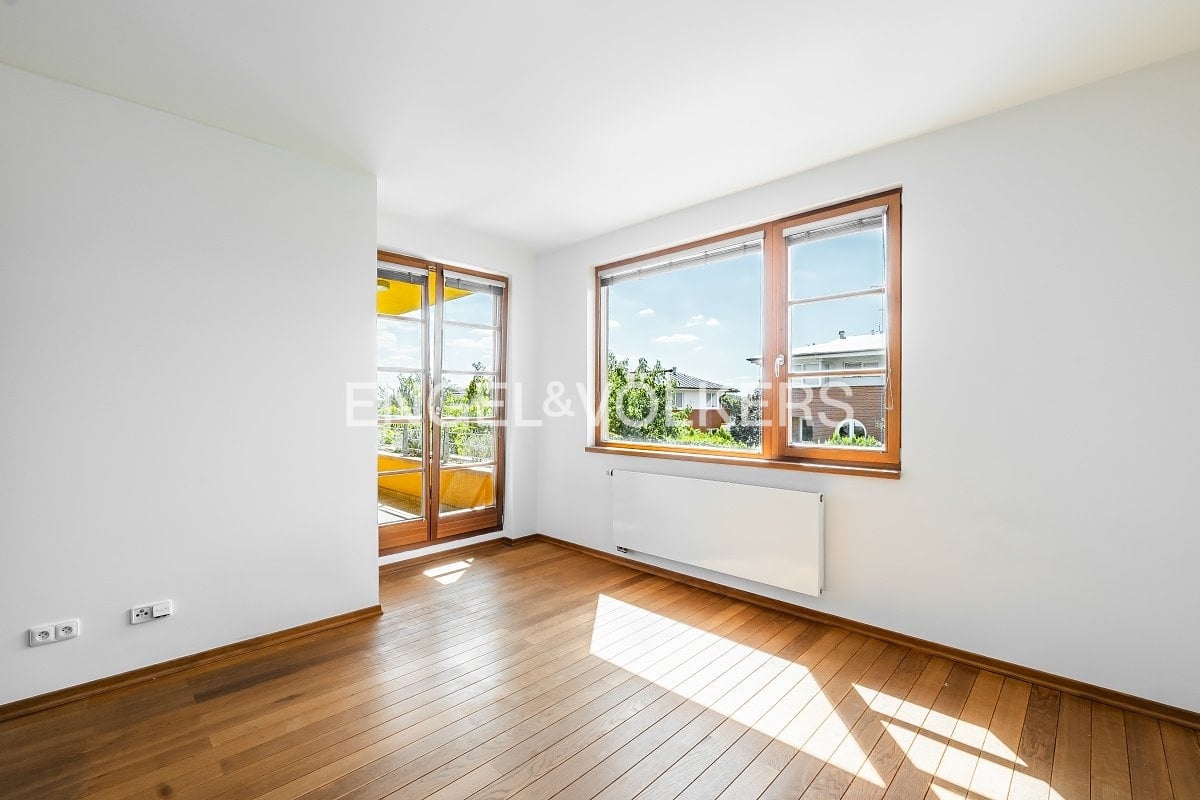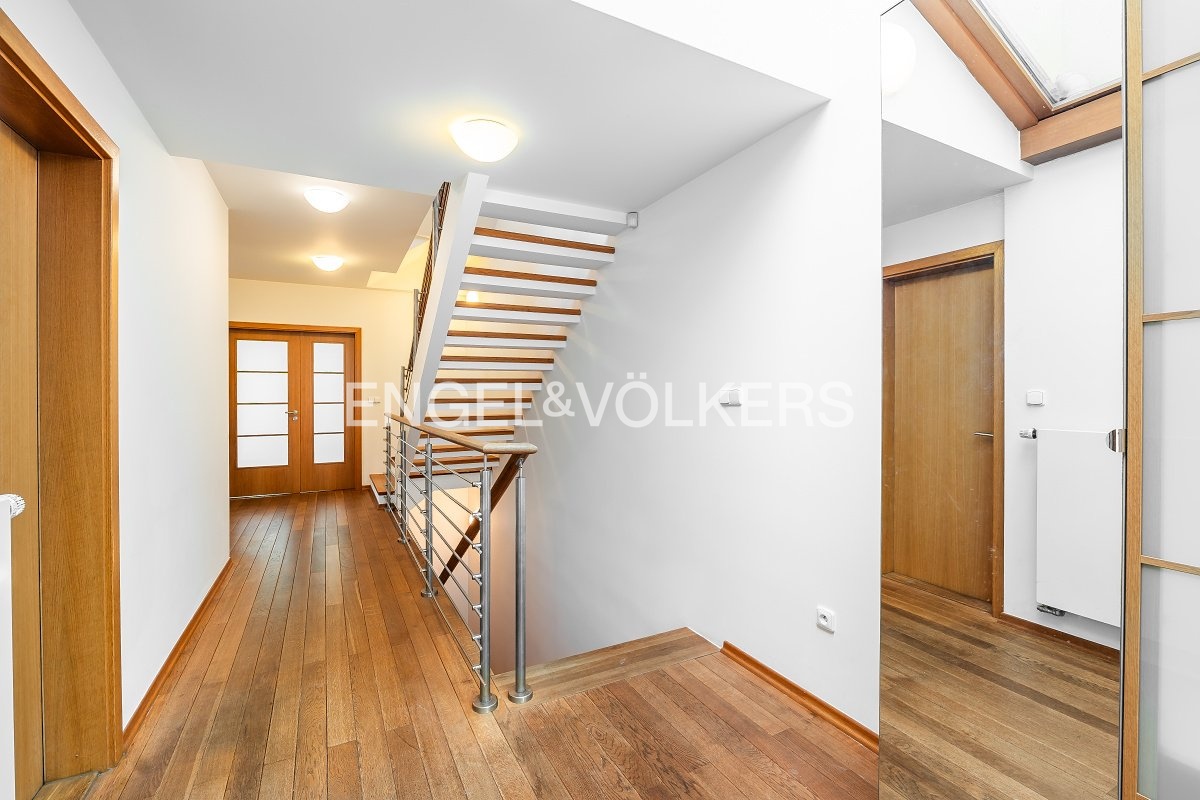 Nadstandardní rodinný dům v Jinonicích v blízkosti mezinárodních škol, například Francouzského lycea či Německé školy. Tento dům má celkem tři podlaží. V přízemí je velkorysý obývací pokoj, plně vybavený kuchyňský kout a ložnice/pracovna s koupelnou. Z přízemí domu je vstup do garáže a také na rozsáhlou zahradu s terasou.