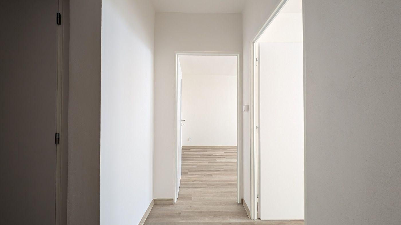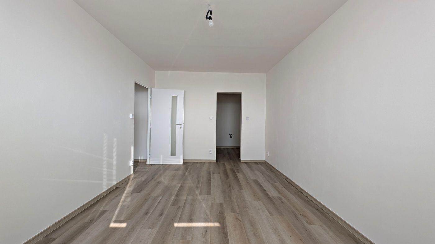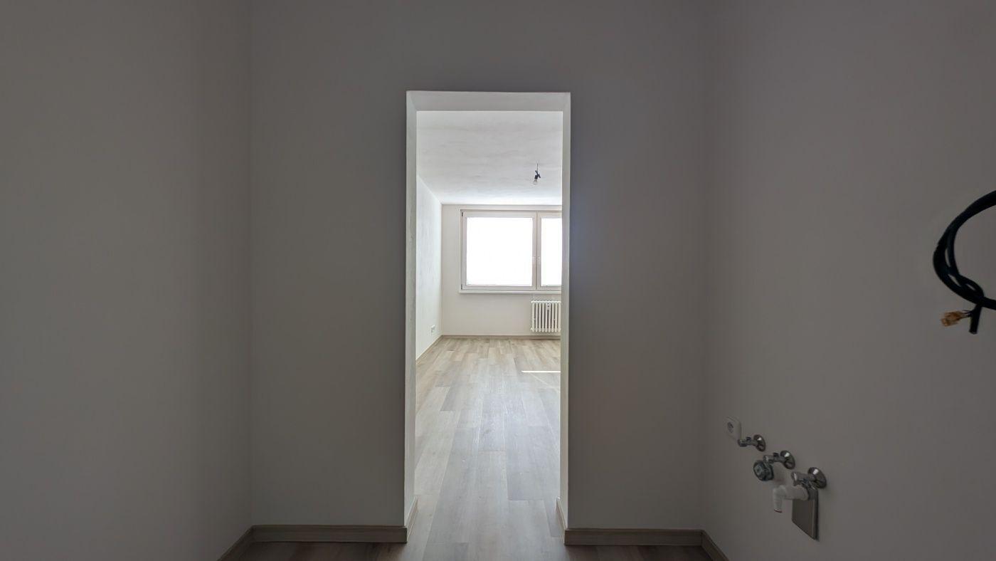 Bytová jednotka v 8. NP panelového domu nabízí dálkové výhledy a dostatek světla. Dispozice 2+kk zahrnuje dvě místnosti osazené radiátory a kompaktní kuchyňský kout. V interiéru jsou položeny světlé dřevěné podlahy a okna jsou vybavena žaluziemi. Koupelna disponuje sprchovým koutem a velkoformátovými obklady. Byt je situován v domě s výtahem.