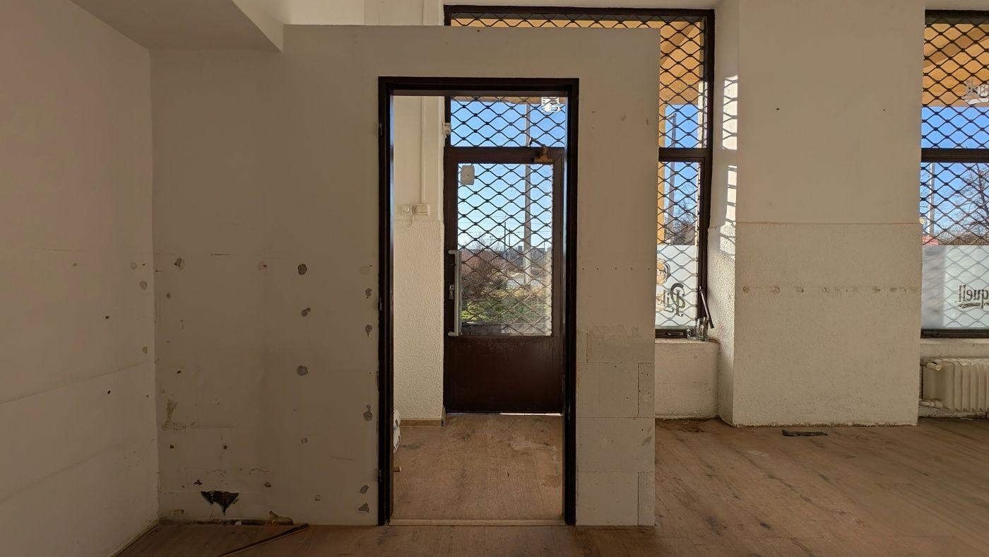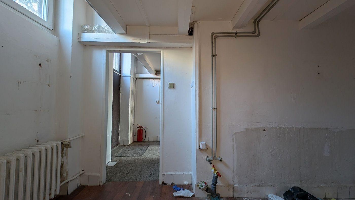 Prostor tvořený třemi podlažími (včetně mezipatra). V přízemí se nachází obchodní plocha s prosklenou výlohou a dřevěnou podlahou. Suterénní část má bíle natřené cihlové stěny, betonovou podlahu a viditelné rozvody potrubí a elektroinstalace podél stropů. K dispozici je sociální zázemí s dlažbou a radiátory pro vytápění.