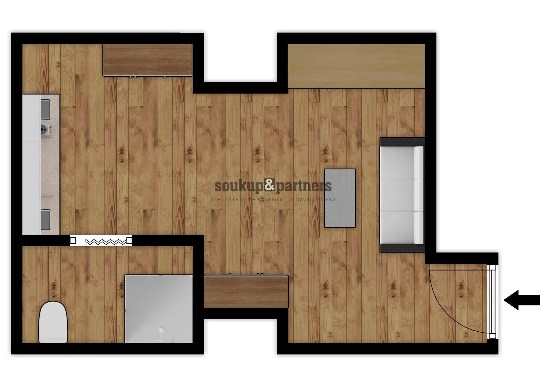 | Dispozice/podlahová plocha: | 1+kk/19 m² |