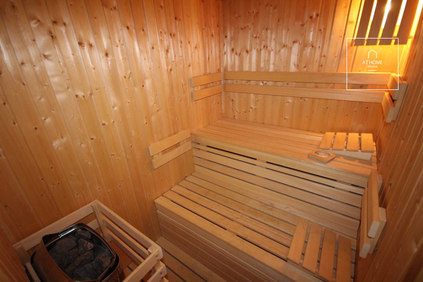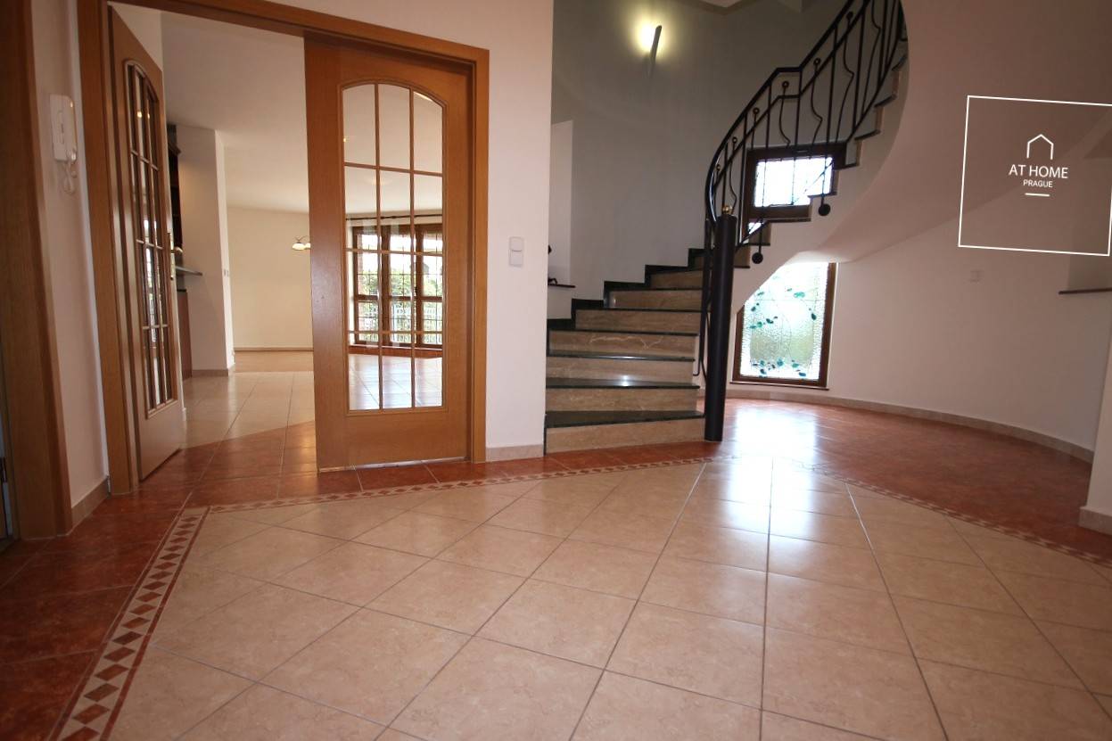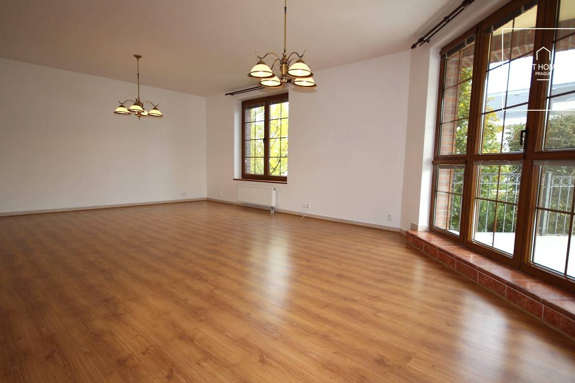 Prostorná vila 9+1 na Praze 6, v Nebušicích. 384m2, 2 patra, zahrada, vyhřívaný venkovní bazén, terasa a garáž pro 2 vozy. Další parkování na pozemku. Obývací pokoj se vstupem na terasu a do zahrady, plně vybavená kuchyň s jídelní částí, 2 ložnice v přízemí a 6 ložnic v horním patře. 4 koupelny (jedna z koupelen je u sauny - sprchový kout), komora, úklidová místnost, kotelna, spíž a 2 balkony. Udržovaná zahrada, alarm, trezor, vestavěné skříně. V blízkosti mezinárodní školy, dobrá dostupnost do centra i na letiště. Energetický štítek G (údaj bude aktualizován). Unfurnished, spacious 8-bedroom family house in Nebušice, Prague 6. 384 sq m, 2 levels, garden, heated outdoor swimming pool, terrace. Living room with access to the terrace and the garden, well-equipped kitchen with dining area, 2 bedrooms on the ground floor and 6 bedrooms on the upper floor. 4 bathrooms, sauna, pantry, utility room, 2 balconies. Indoor parking for 2 cars + parking places on the yard. Maintained garden, alarm-system, safe, built-in wardrobes. Close to the international school. Easy access to the city center and the airport. Energy label G (will be updated).