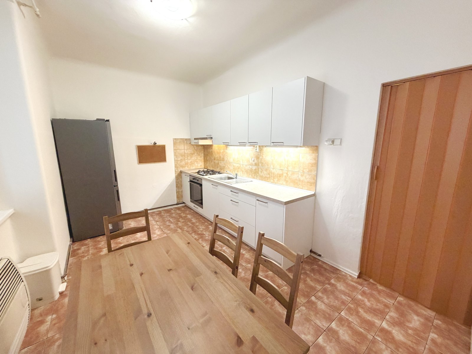 Nabízíme pěkný zrekonstruovaný byt o velikosti 1+1, 47m2. Byt se nachází ve zvýšeném přízemí (cca 1,7m) cihlového domu. Byt zůstane vybaven pouze kuchyňskou linkou s plynovým deskou, horkovzdušnou troubou a lednicí s mrazákem. Koupelna se sprchovým koutem a pračkou, toaleta je odděleně. Krytina v pokoji plovoucí podlahy, v kuchyni a předsíni je dlažba. Vytápěno plyn WAW. Ohřev teplé vody plynovým kotlem. V bytě komora - šatna. Výhled do ulice, okna jsou zabezpečena mřížemi. Bezpečnostní dveře. K dispozici sklep. Vhodné pro 1 osobu či pár. Nájem 15.000,-Kč + poplatky 3.000,-Kč, kauce 18.000,-Kč, provize RK ve výši jednoho nájmu + DPH. K nastěhování od března.
