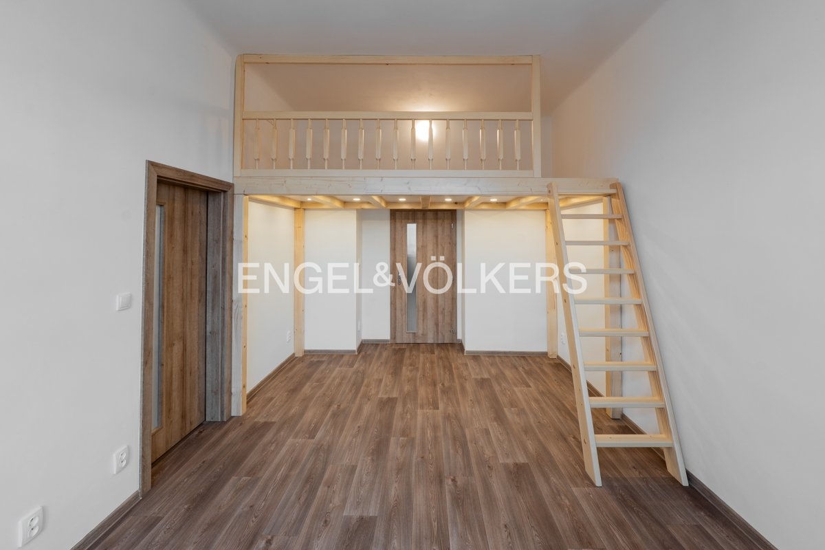 Dispozici bytu tvoří vstupní hala, dvě průchozí místnosti se spacím patrem orientované do ulice, samostatná plně vybavená kuchyň (indukční varná deska, trouba, lednice s mrazákem), koupelna se sprchovým koutem a samostatná toaleta. K dispozici je také praktická technická místnost s úložným prostorem. Součástí vybavení je pračka umístěná v kuchyni.
