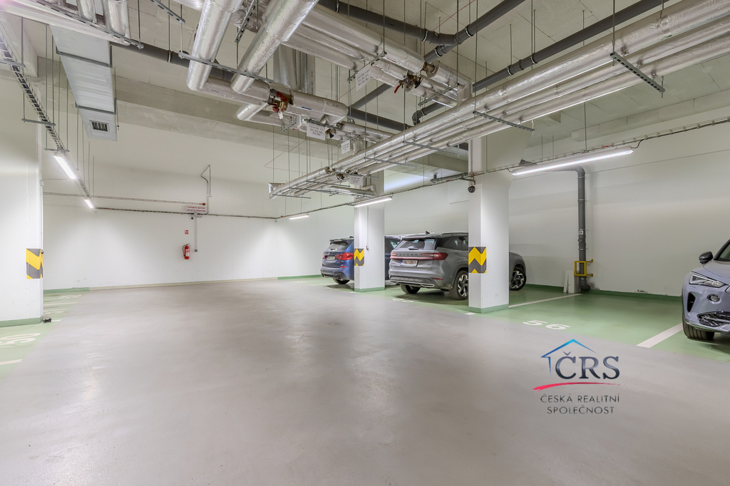 Garážové stání v přízemí domu. V domě k dispozici kočárkárna s kolárnou.