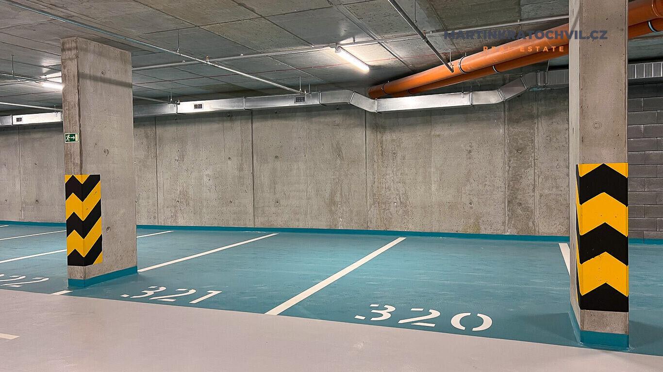 Parkovací a sklep je v garážích bytového domu. Možnost pronájmu jednoho parkovacího stání za měsíční poplatek 1.700 Kč.