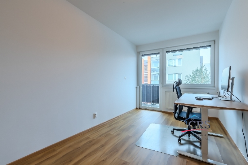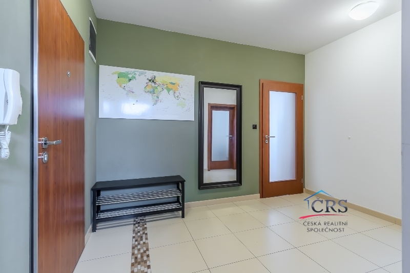 V bytě je prostorný obývací pokoj s kuchyňským koutem, kuchyňská linka s ostrůvkem, vybavená skloker.deska, elektrická trouba, myčka, mikrovlnná trouba, digestoř a lednice. Každý pokoj má vlastní vstup na balkón, neprůchozí pokoje. Koupelna s oknem a sprchovým koutem, WC odděleně. Na podlahách dlažba, marmoleum a plovoucí podlaha. Obložkové zárubně a interiérové dveře, bezpečnostní vchodové dveře.