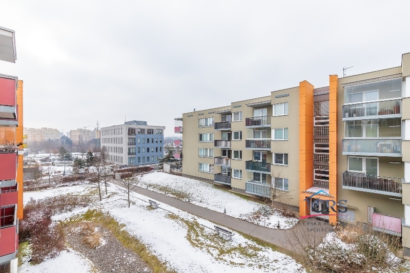 Byt se nachází v předposledním třetím patře skeletové budovy s výtahem, kolaudované roku 2008 - Skanska.