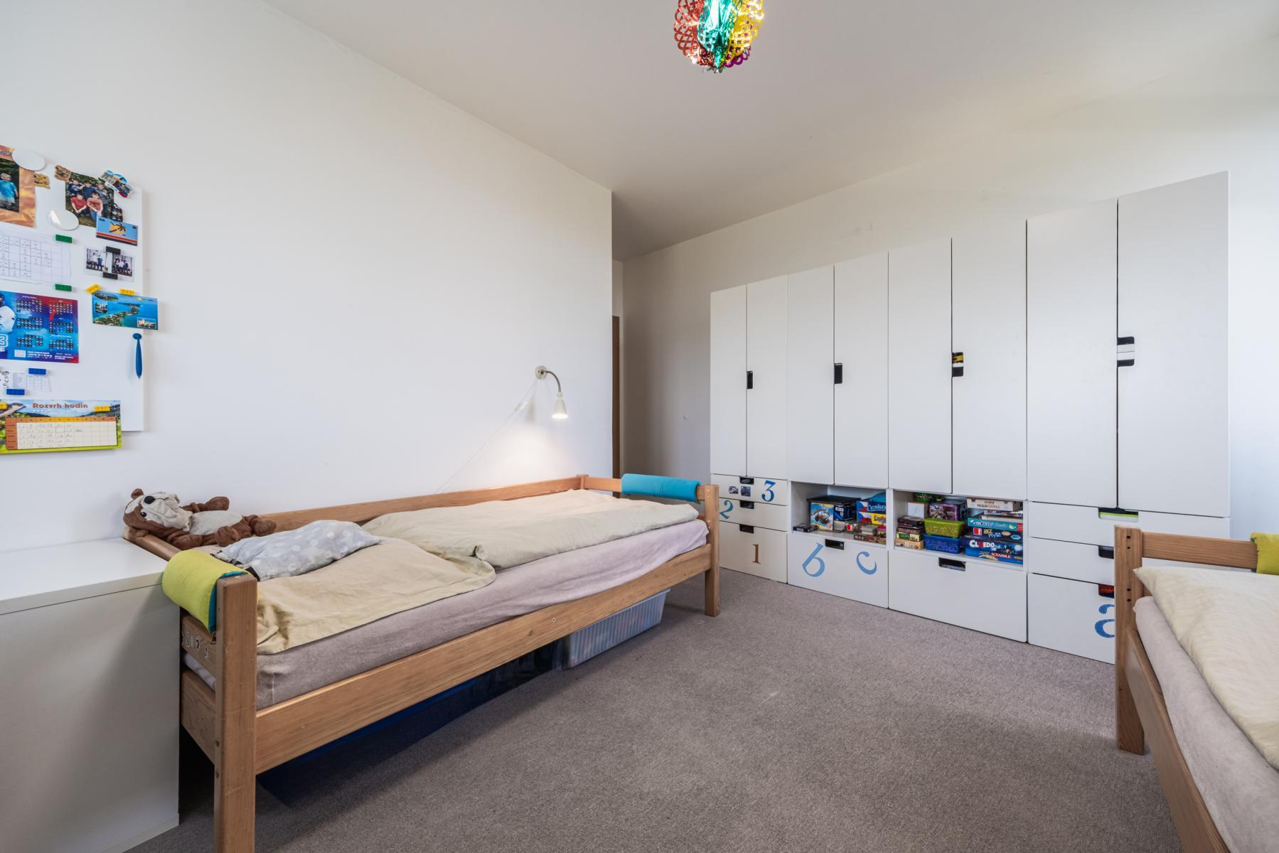 Byt je částečně zařízen, kuchyňská linka, lednice, myčka, vestavěná skříň na podlahách plovoucí podlaha a dlažba.