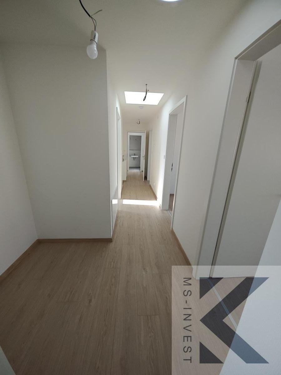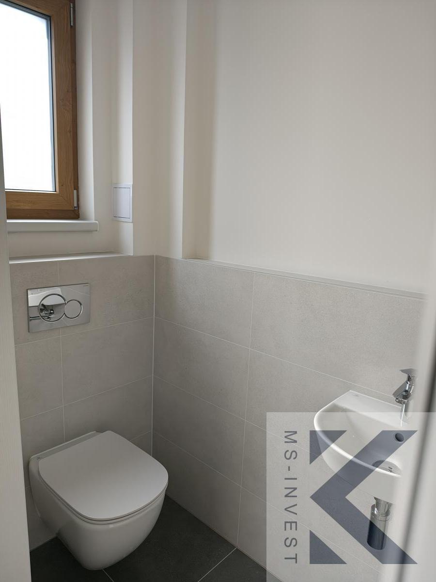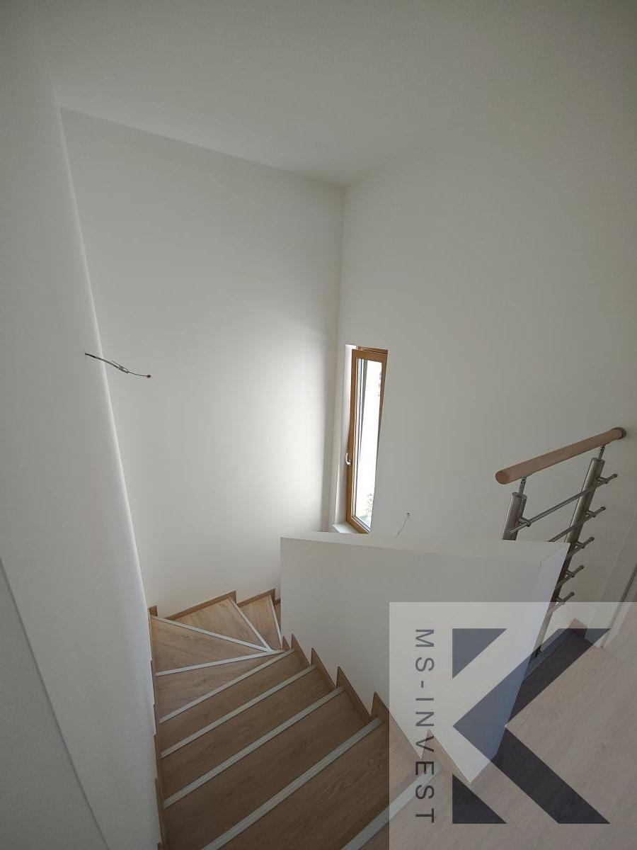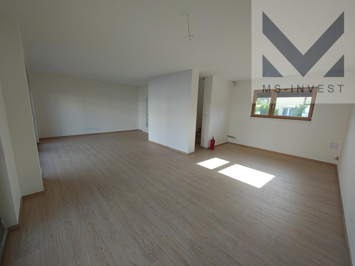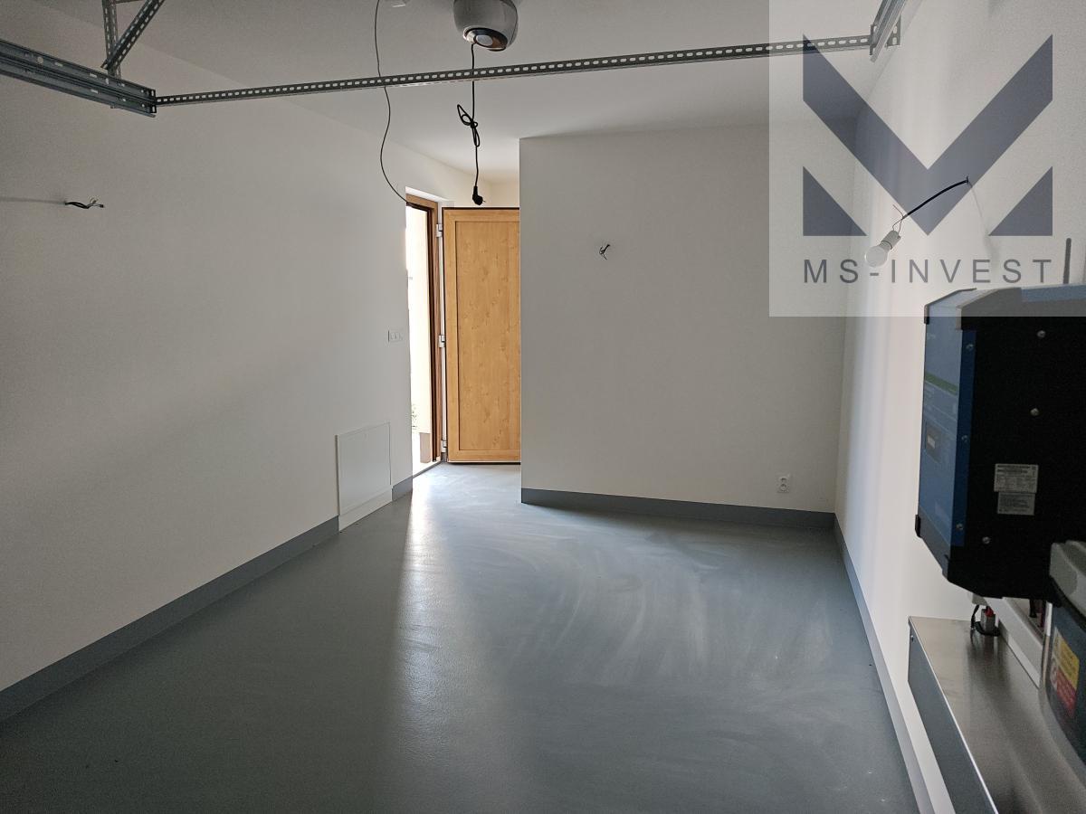 Nabízený krajní dům v projektu L-5 velikosti 5+kk a celkové podlahové ploše 160 m2 s největším pozemkem o ploše 321m2 s příjezdem u ulice Za Školkou disponuje v 1. NP vlastní garáží, zázemím (skladem) za garáží se vstupem na zahradu, dále předsíní, komorou, sprchovým koutem s toaletou, velmi prostorným obývacím pokojem s kuchyňským koutem o ploše 46 m2 a navazující terasou propojující dům se zahradou. Ve 2. NP se nachází hlavní ložnice o ploše 17 m2, včetně samostatné koupelny se sprchovým koutem a WC, se vstupem z ložnice, dále další menší tři pokoje o velikostech okolo 11 m2, koupelna s vanou a dvěma umyvadly a další samostatné WC spojené s technickou místností. Pozemek má potom velikost 321 m2.