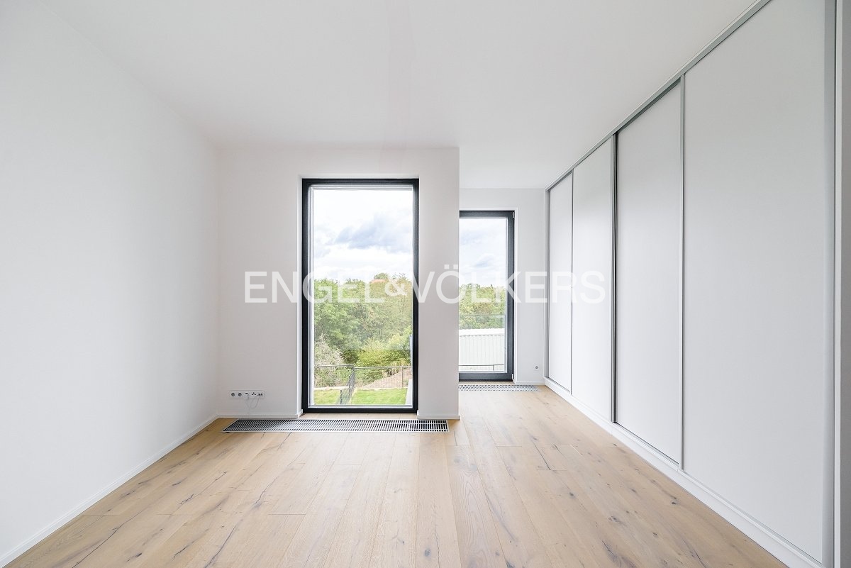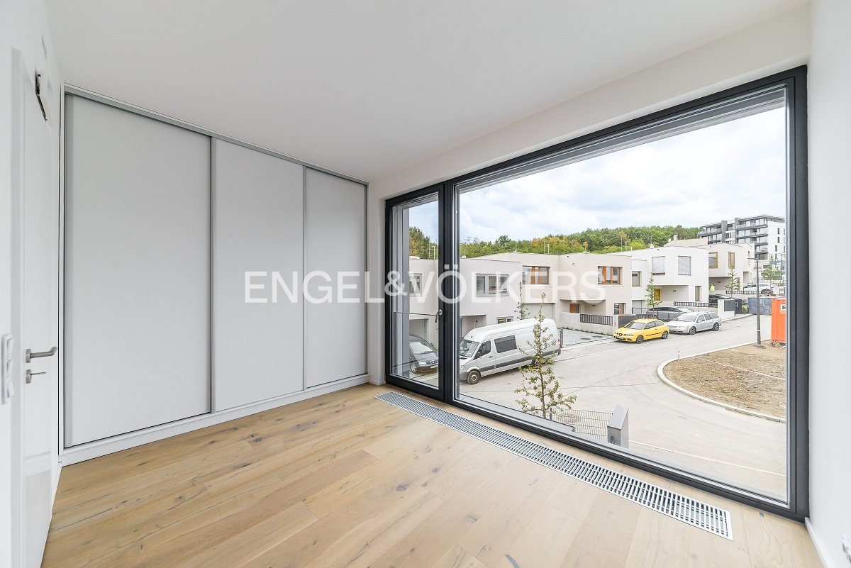 Nabízíme k dlouhodobému pronájmu nově dokončený rodinný dům s dispozicí 4+kk v žádané rezidenční lokalitě Košíře. Rodinný dům je součástí nového developerského projektu Top Rezidence Pomezí a díky své lokalitě nabízí výbornou dostupnost do centra nebo do přírodního parku Cibulka, který je vzdálený jenom 5 minut pěšky. Dům je vybavený venkovními elektrickými žaluziemi, klimatizací v každém pokoji a rekuperací.