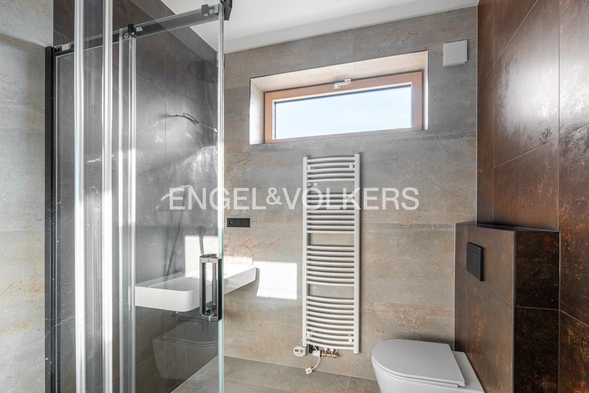 Na první pohled vás zaujmou použité kvalitní materiály, vestavěné šatní skříně na míru, podlahové vytápění, fotovoltaická elektrárna s tepelným čerpadlem země voda, zabezpečovací systém, videotelefon a kamerový systém