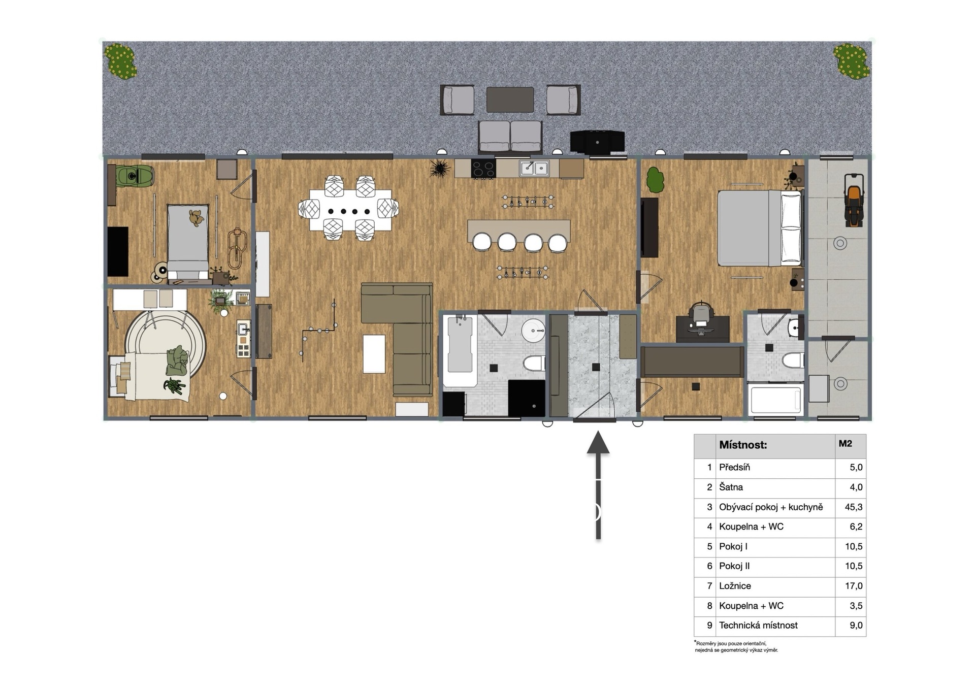 Dům je navržen jako bezbariérový, což zajišťuje maximální pohodlí a dlouhodobou využitelnost pro všechny generace.