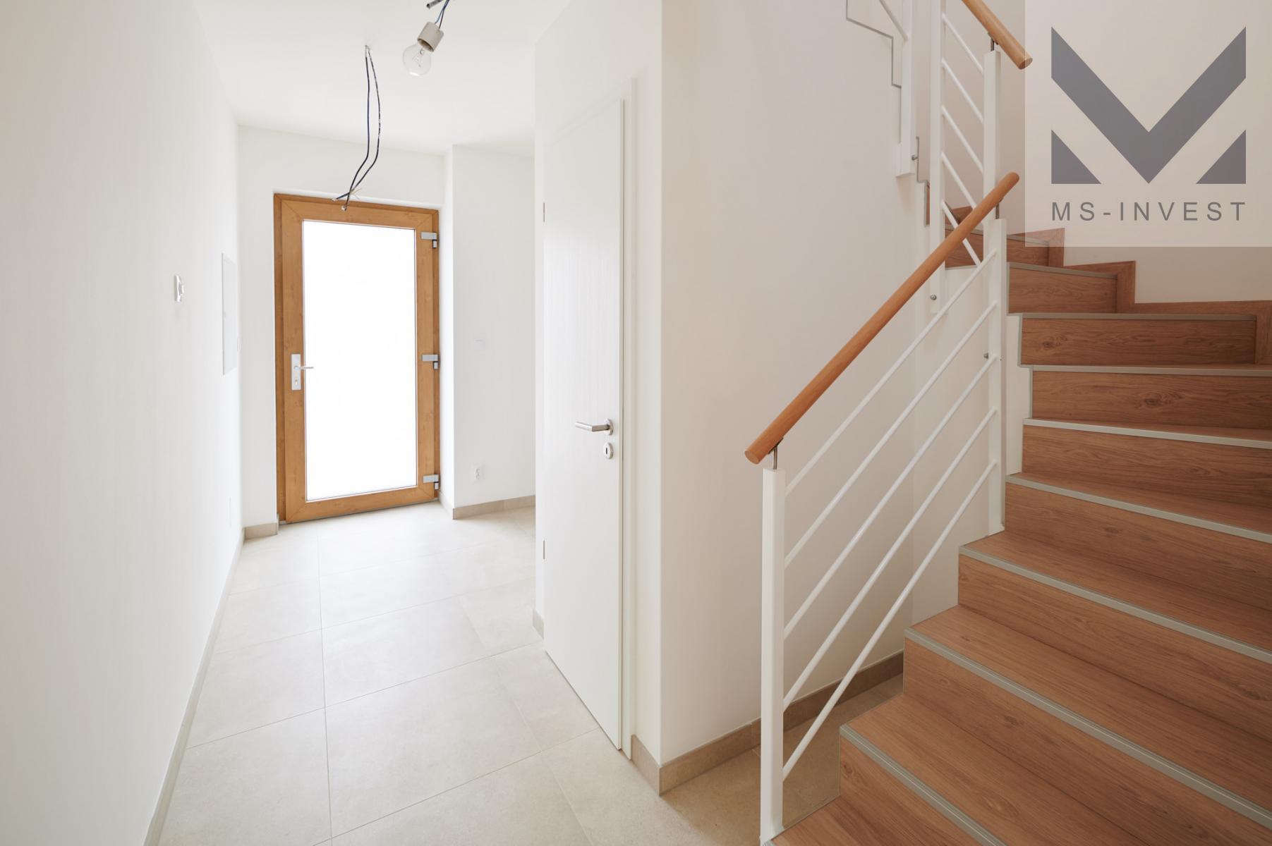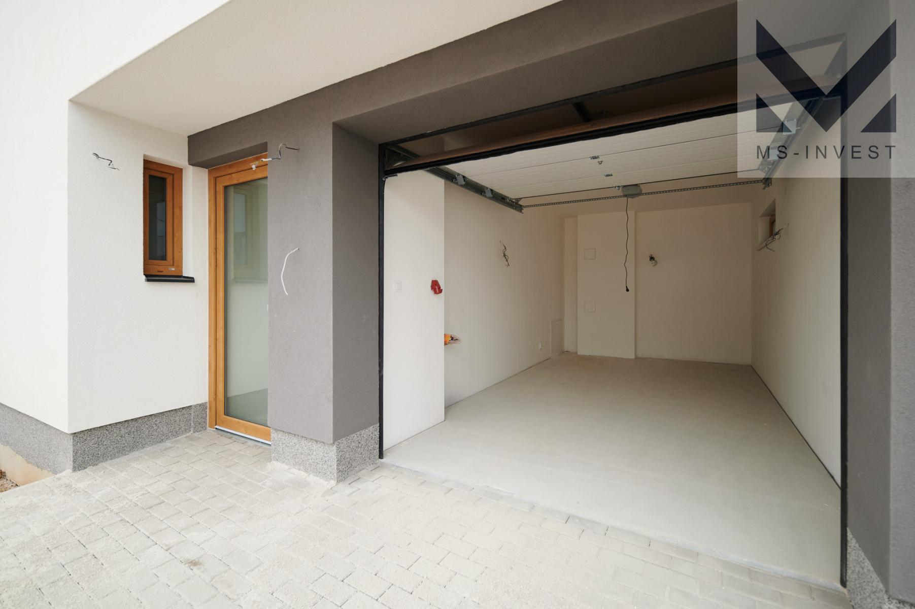 Kromě vlastní garáže je možné parkovat další auto na vlastním pozemku před domem. V ceně domu je mimo jiné fotovoltaika s bateriovým úložištěm a napojením do distribuční soustavy a dálkově ovládané hliníkové předokenní žaluzie na všech oknech. Fota interiéru jsou z tohoto domu, který je již možné navštívit.