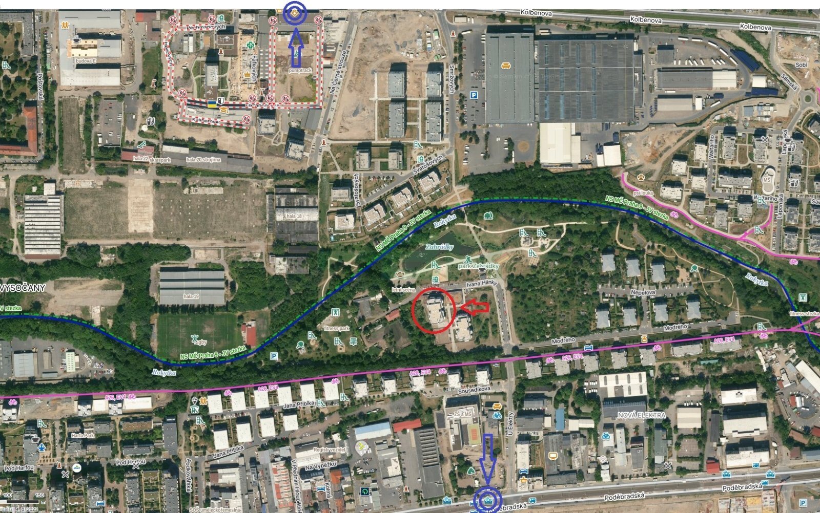 Absolutní klid, množství zeleně, nádherný výhled a výborná dostupnost MHD (700 m na |M| Kolbenova nebo 400 m na tramvajovou zastávku Elektra, ul. Poděbradská. Přímo u parku Zahrádky – Rokytka, fitness park, cyklostezka A26.