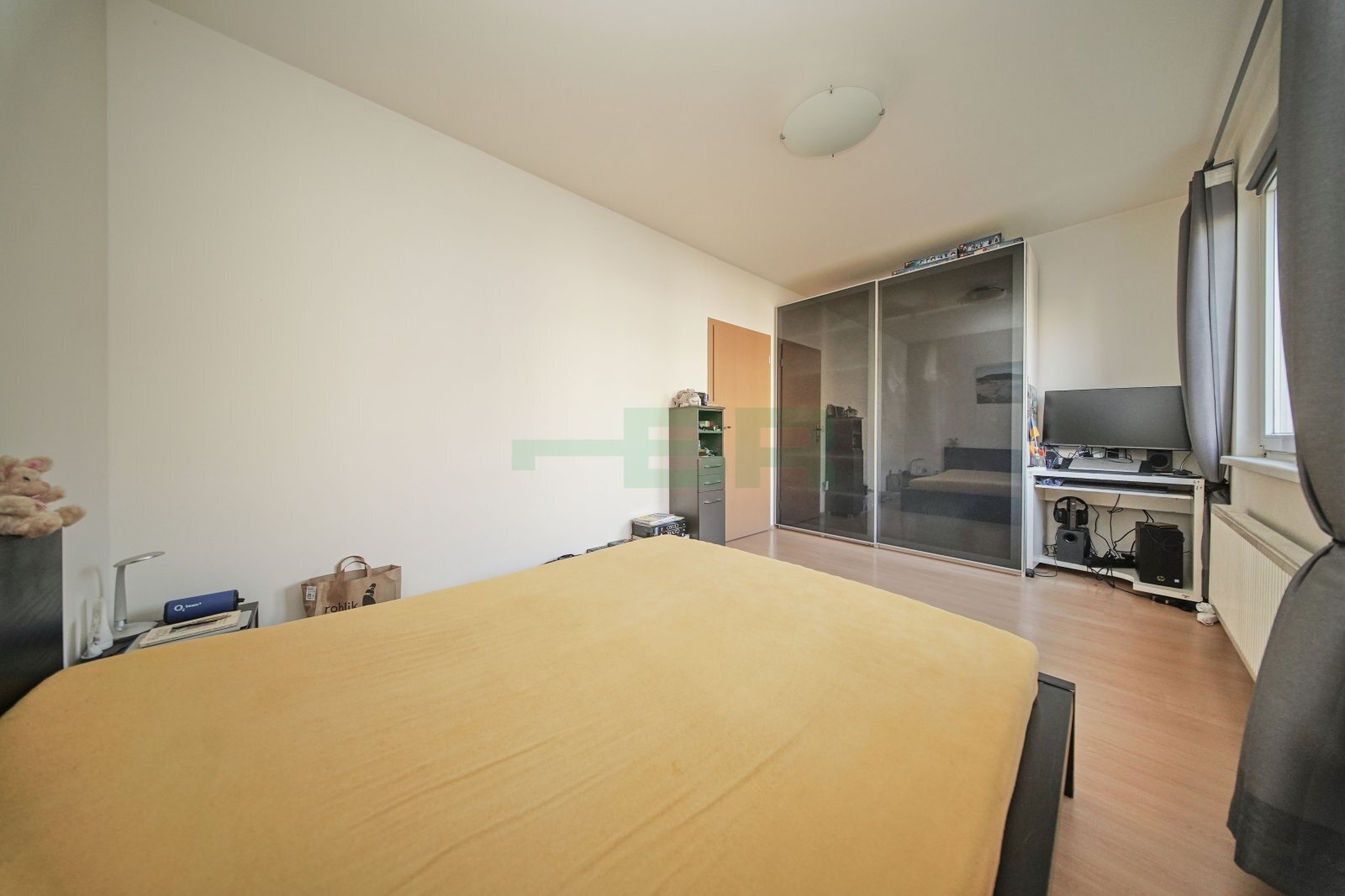 Ideální orientace oken na JJZ (obývací pokoj s balkonem) a SSV (ložnice). Velmi prostorná koupelna s vanou a pračkou. WC samostatné. Na podlahách dlažba a plovoucí laminátová. Vytápění centrálním plynovým kotlem v domě - měřič vstupního tepla do bytu. Stropy vysoké 261 cm.