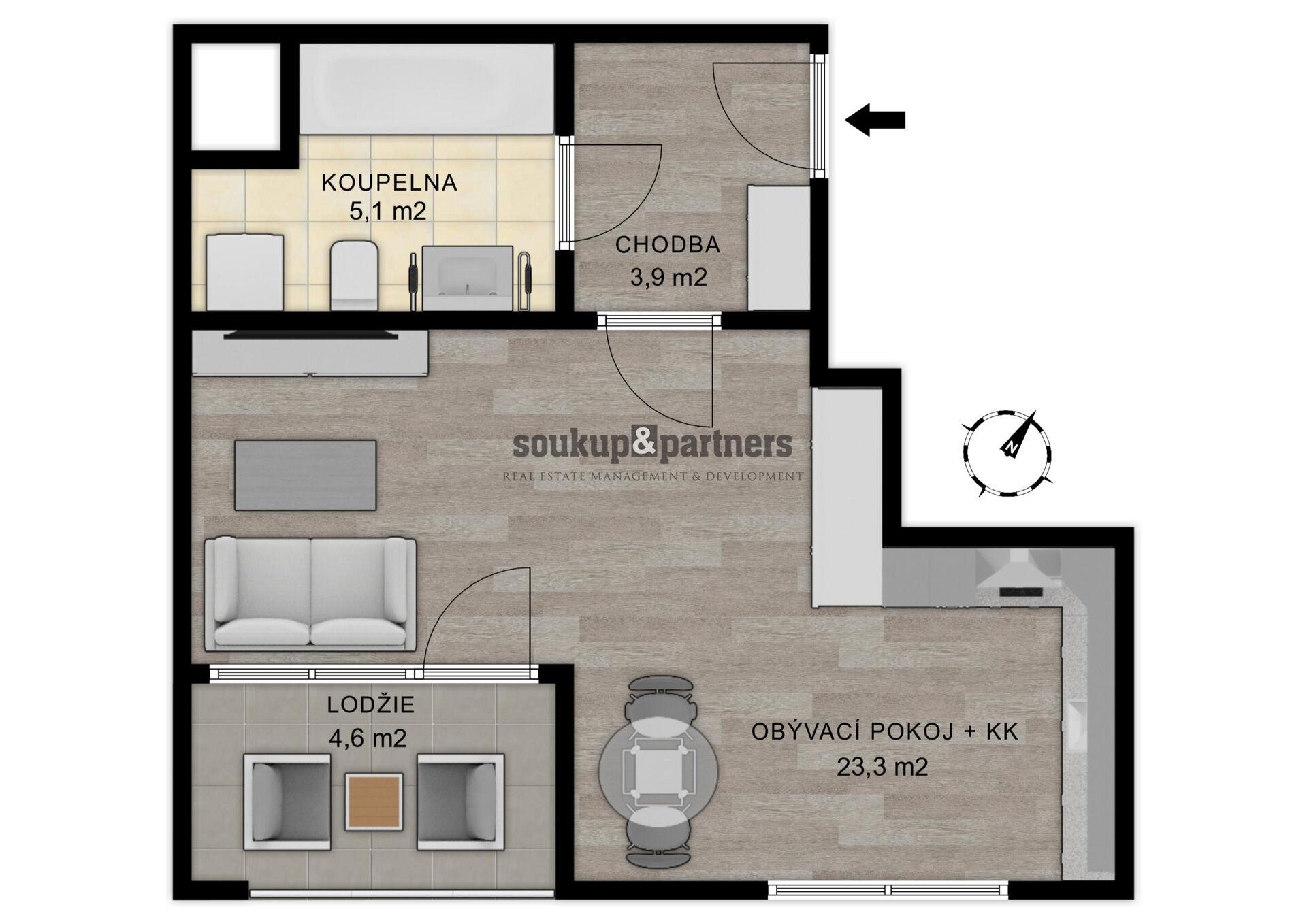 Dispozice: 1+kk | Podlaží: 5. NP.