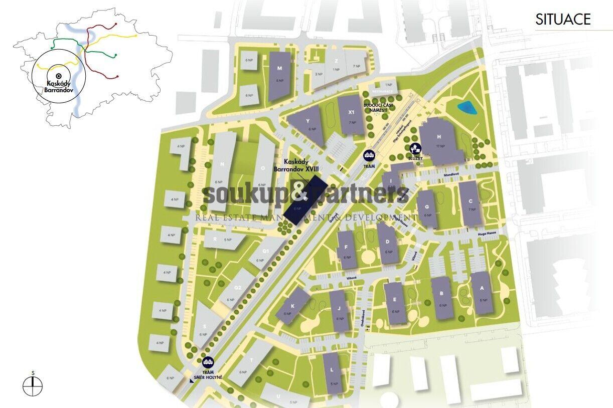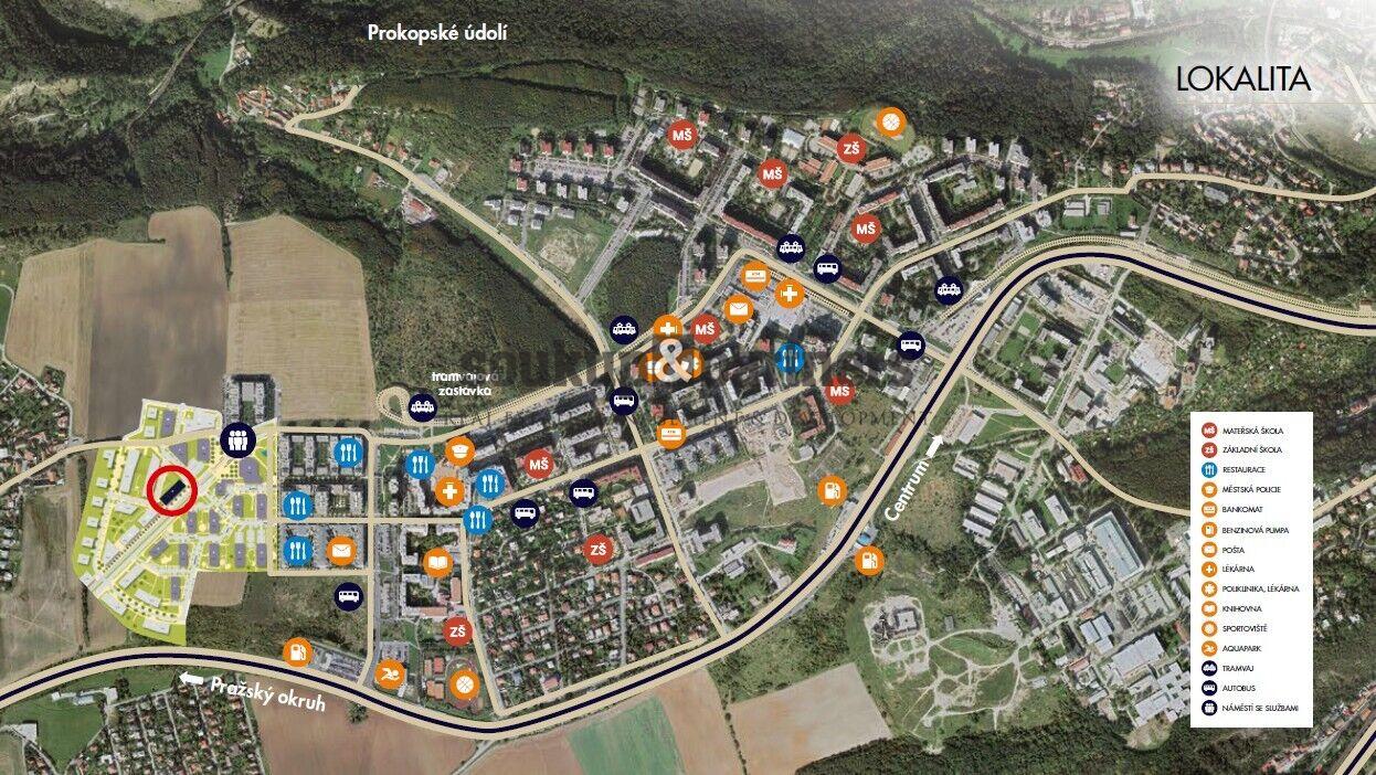Prodej nového družstevního bytu 1+kk s lodžií a velkým sklepem (12 m2) v projektu Kaskády Barrandov na Praze 5, novostavba FINEP, tramvajová zastávka u domu, rychlé spojení na metro Smíchovské nádraží.