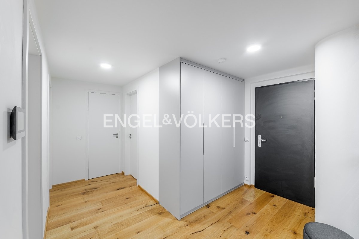 Byt má plně vybavenou kuchyni s kvalitními spotřebiči, exteriérovými žaluziemi a domácím interkomem s přístupem ke kamerovému systému. Lodžie nabízí i možnost úplného zasklení, takže ji v zimních měsících lze využívat jako zimní zahradu.
