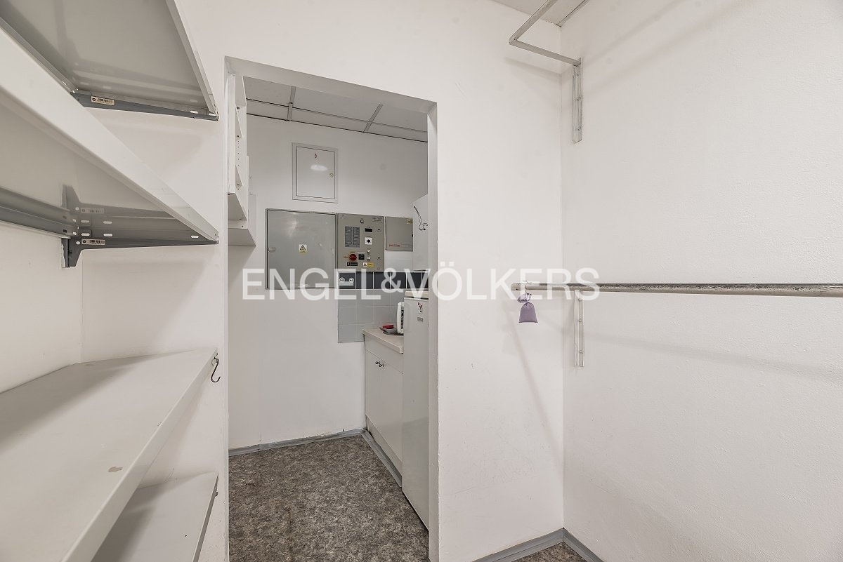 Dominantním prvkem prostoru jsou dva kamenné sloupy umístěné v centrální části jednotky. Součástí vybavení jsou zkušební kabinky a prodejní pult po předchozích nájemcích. Jednotka dále disponuje sociálním zázemím s toaletou a kuchyňkou a samostatným prostorem, který lze využít jako sklad nebo provozní zázemí. K zázemí vede také samostatný vstup, který je vhodný pro zásobování.