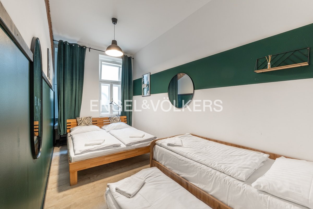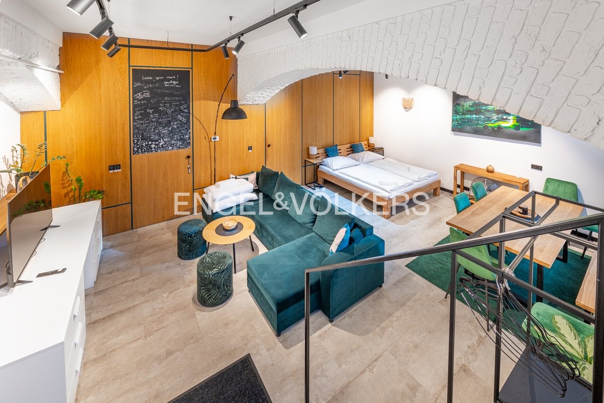 Nabízíme k pronájmu kompletně zrekonstruovaný prostor, situovaný v přízemí elegantního činžovního domu na prestižní adrese Rašínova nábřeží s výhledem na Vltavu jen pár kroků od oblíbené pražské náplavky. Prostor je aktuálně využíván jako krátkodobé ubytovací zařízení, v minulosti však sloužil jako obchodní jednotka s původní kolaudací na „krám“. Díky tomu je možné jeho všestranné využití – ideálně jako reprezentativní kancelář, ateliér, showroom nebo designový obchod. Jedná se o snížené 1. NP se samostatným vstupem přímo z ulice s dvěma velkými okny využitelnými jako výlohy, která zajišťují dostatek denního světla a výbornou viditelnost z nábřeží.
