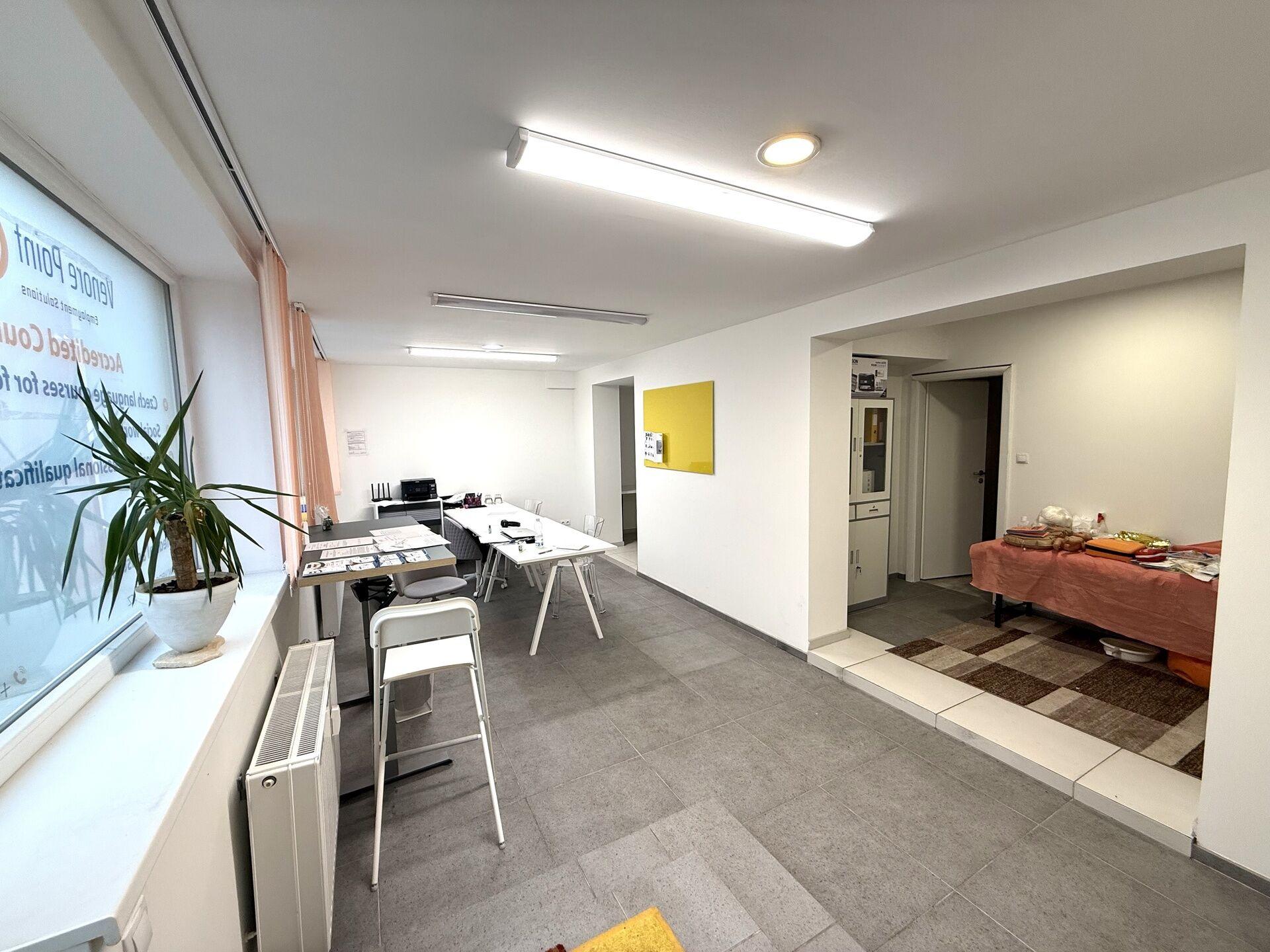 Prostor je přehledně členěný, nabízí variabilní využití a je vhodný zejména pro kancelář, poradenství, služby nebo menší provozovnu.