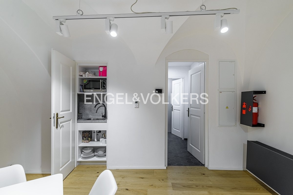 Nedaleká barokní kaple s freskami, kde sídlí Italský kulturní institut v Praze, či malebná nemocnice Milosrdných sester sv. Karla Boromejského. Takové prostředí nabízí ideální prostor pro váš obchod s módou, doplňky či galerii umění v srdci Malé Strany.