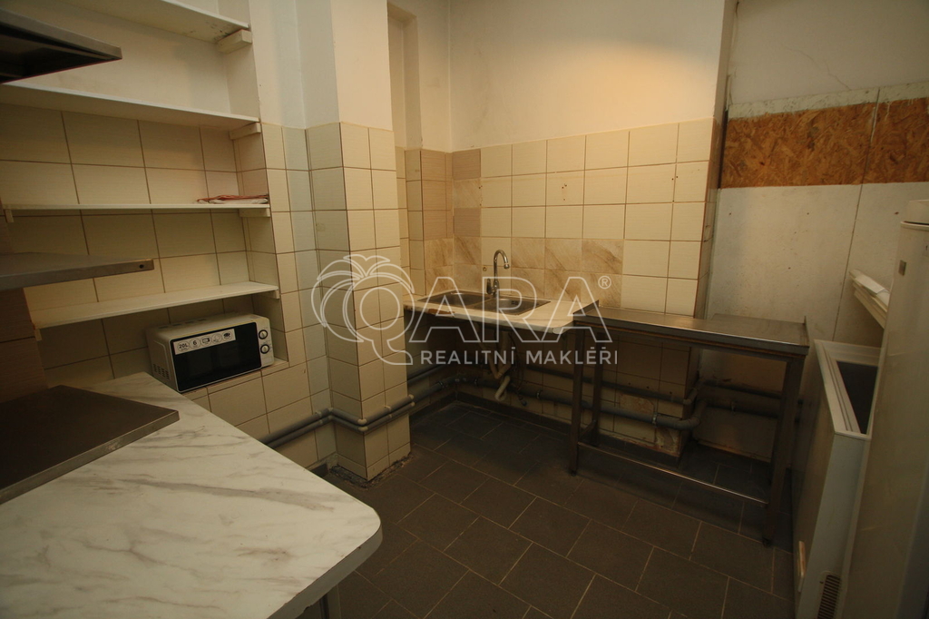 Nebytový prostor je zkolaudován jako prodejna pekařského zboží s občerstvením a provozu hostinské činností. Vytápí se plynovým kotlem (pro celý dům). Nachází se přímo u zastávky MHD v rezidenční lokalitě Vršovic. Ideální místo např. pro prodej pečiva s kavárnou/občerstvením. Toaleta pro zákazníky není možná.