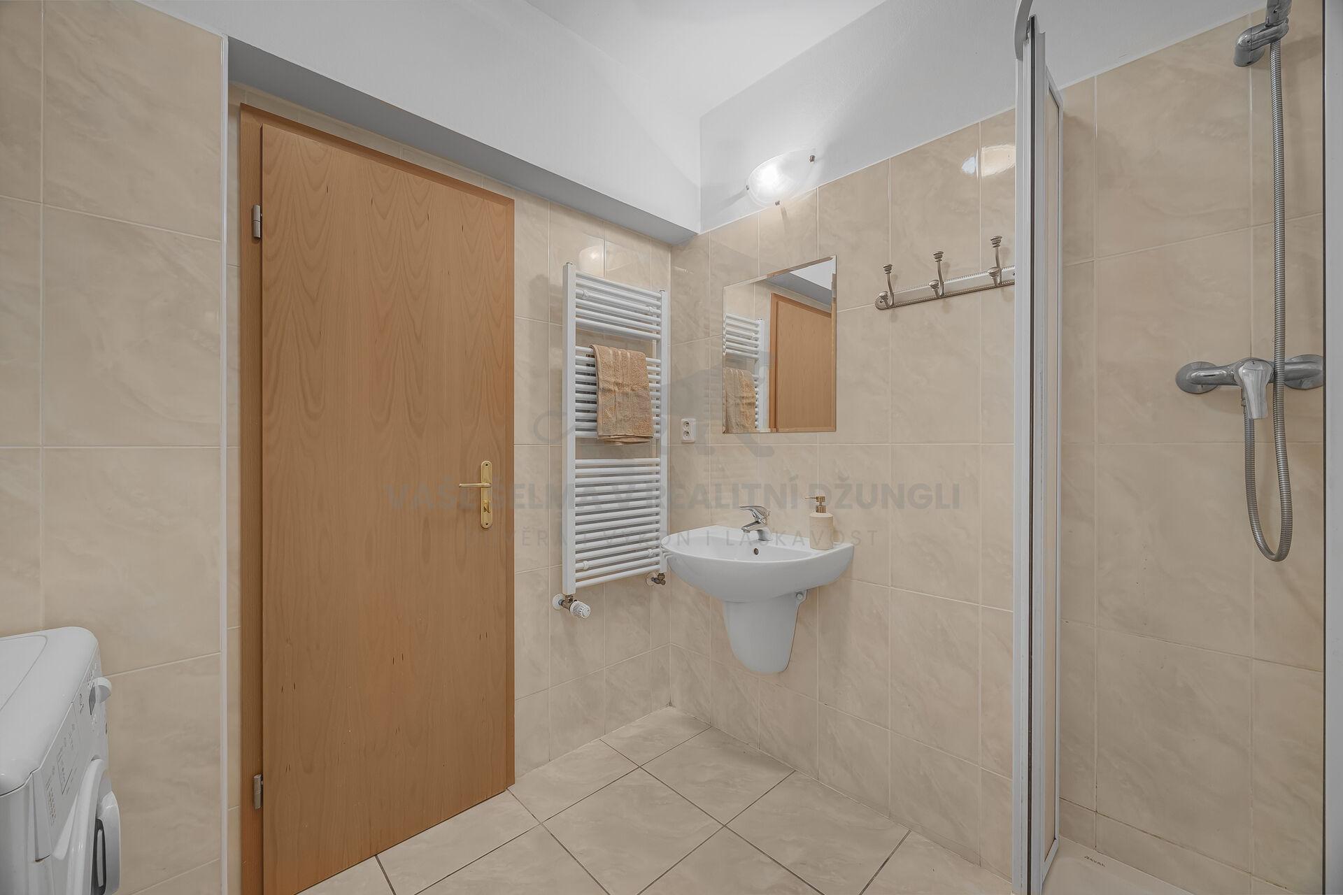 * Pohodlný stav k okamžitému bydlení nebo pronájmu – vestavěný dřevěný nábytek, plovoucí podlahy. (Garáže v domě dostupné, ale ne k bytu.)