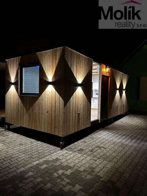 Nabízíme k prodeji moderní obytný modul o rozměrech 8 × 3 m s terasou, který je plně vybavený a připravený k okamžitému užívání.